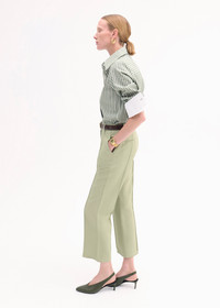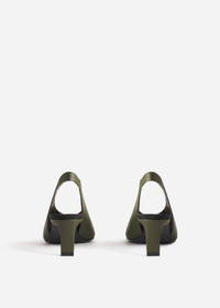 Pointed-toe slingback heel constructed on a narrow last, featuring an adjustable strap for enhanced midfoot security and a contoured fit. Crafted in supple nappa leather with a deep-cut vamp and sculpted 2" low heel. A modern classic with a minimalist edge. Made in Italy. Details - Olive - 100% Leather - Made in Italy - 0091NAP-PF25 Size & Fit - True to size - Narrow profile and a slingback strap to stabilize the foot. - 2" low heel for a subtle lift.