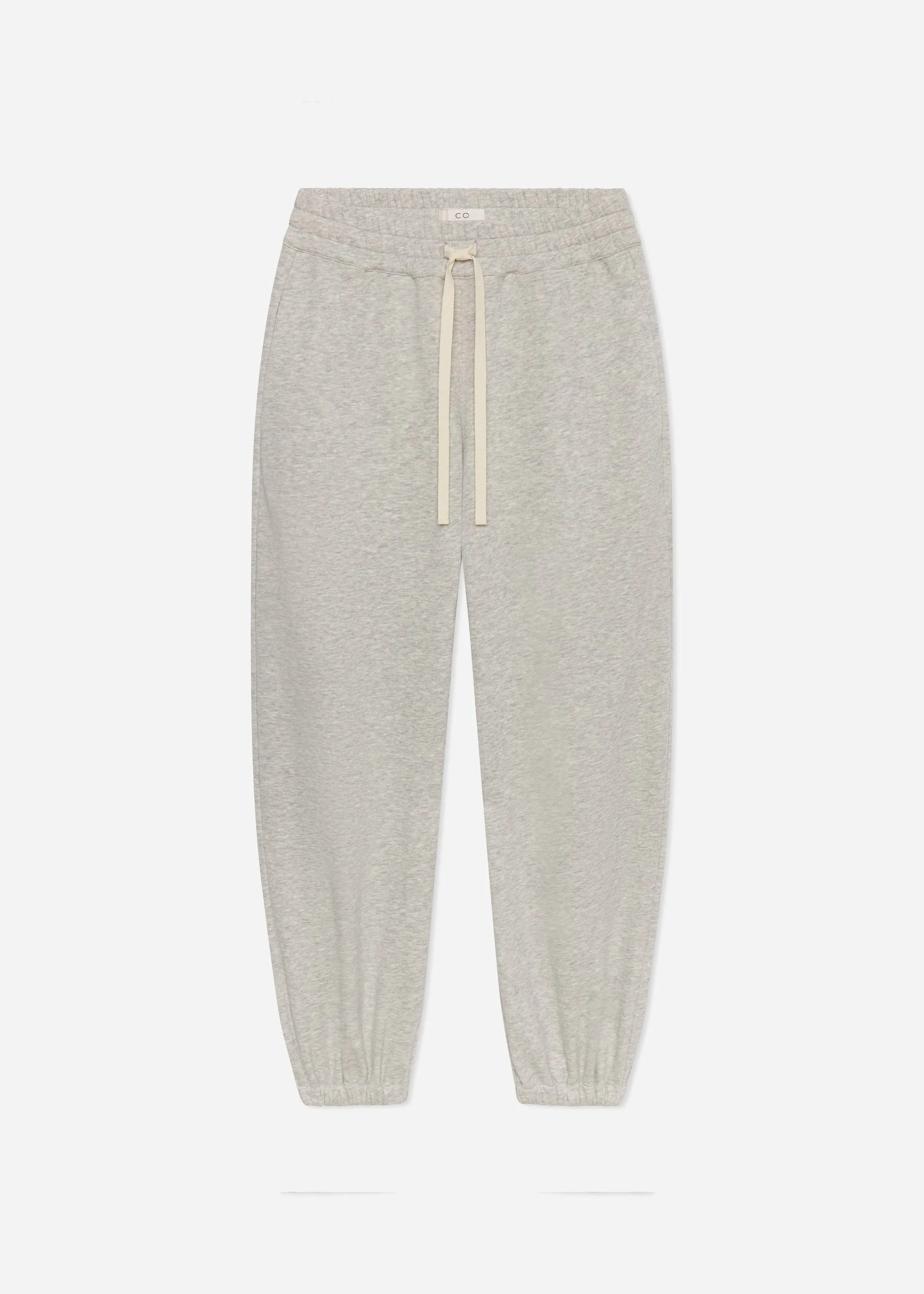 Crafted from spongey cotton and tencel double knit, these jogger-style trousers evoke the sleek, sculptural essence of scuba jersey. Their relaxed yet tapered silhouette drapes softly, while an elasticized waistband and discreet pockets add subtle ease. In a gentle heather grey, they blend softness and structure, perfectly poised between effortless comfort and refined style. Details - Heather Grey - 60% Cotton 40% Tencel - 5254CSNL-CORE Size & Fit - We recommend sizing up if you prefer a loose fit. - In seam is 27" across all sizes