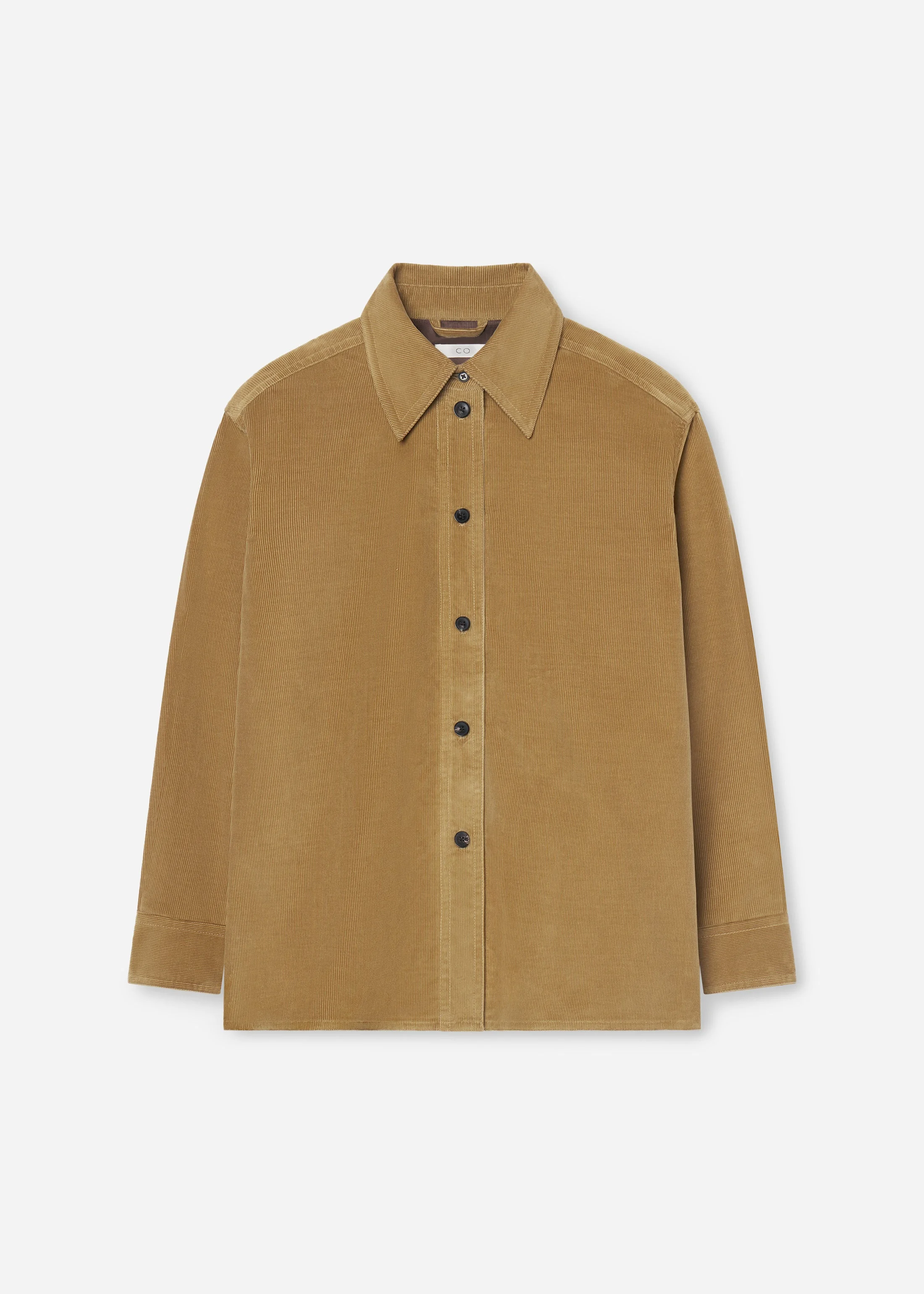 This button down shirt is crafted from wide-wale cotton corduroy with a soft, velvety hand and tailored weight. Designed with a pointed collar, button front placket, and minimal topstitching, the silhouette is clean and slightly boxy for a modern, relaxed fit. Details - Camel - 100% Cotton - Button Down - Dry Clean Only - Style Number: 2331PCC-F25 Size & Fit - Designed to be oversized with a relaxed fit.