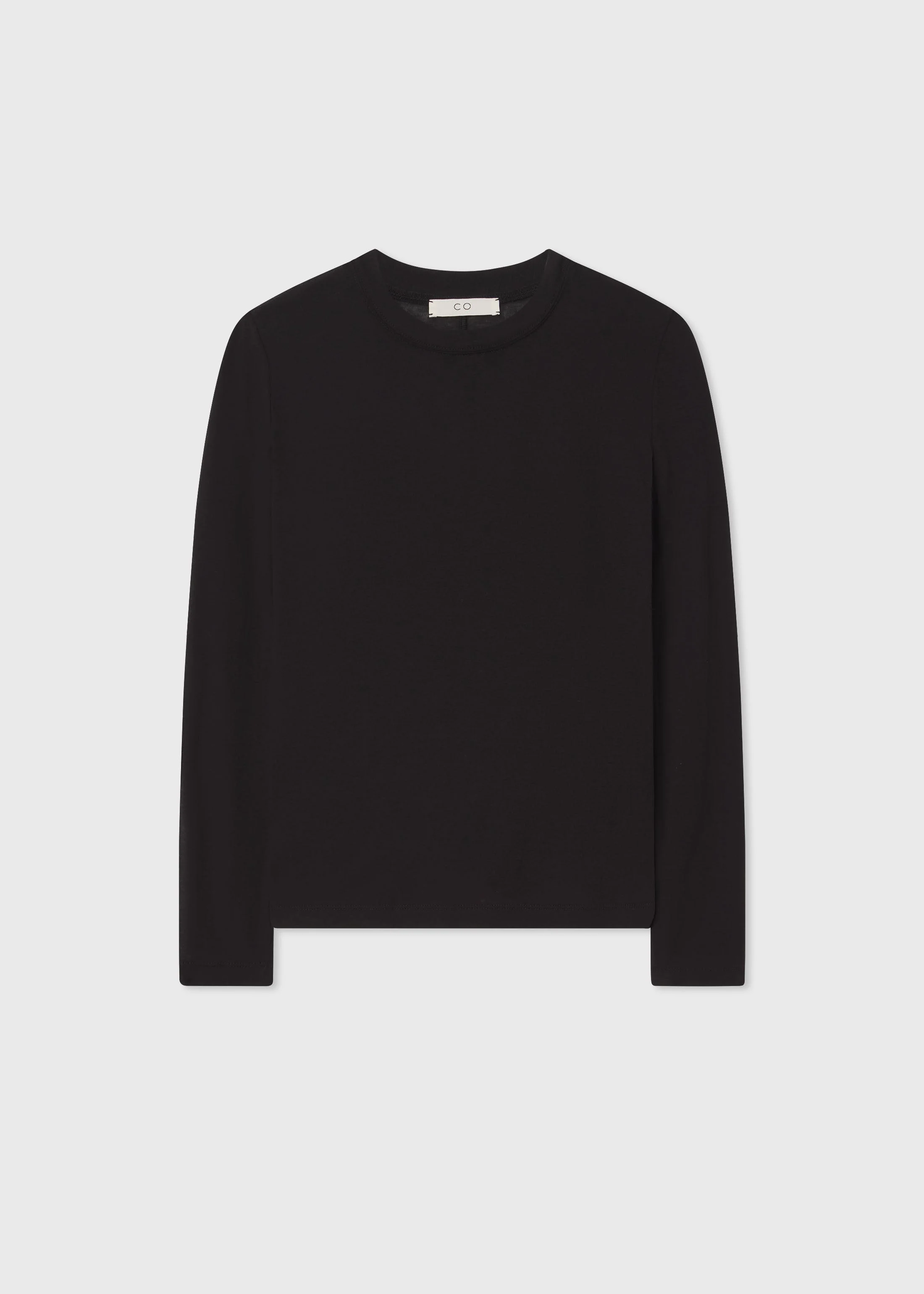A pared-back essential in finely ribbed 100% cotton jersey. This long-sleeve crew sits close to the body with a clean, uninterrupted line. Soft to the touch and light enough for layering, it slips easily under tailoring, knits, or worn on its own. Details - Black - 100% Cotton - Ribbed Cotton Jersey - Long Sleeves - Style Number: 1091NCR-CORE Size & Fit - Fits true to size. - Ribbed Cotton with natural stretch. - Measures 23" from shoulder to bottom hem. - Model Height is 179 cm / 5'11 in