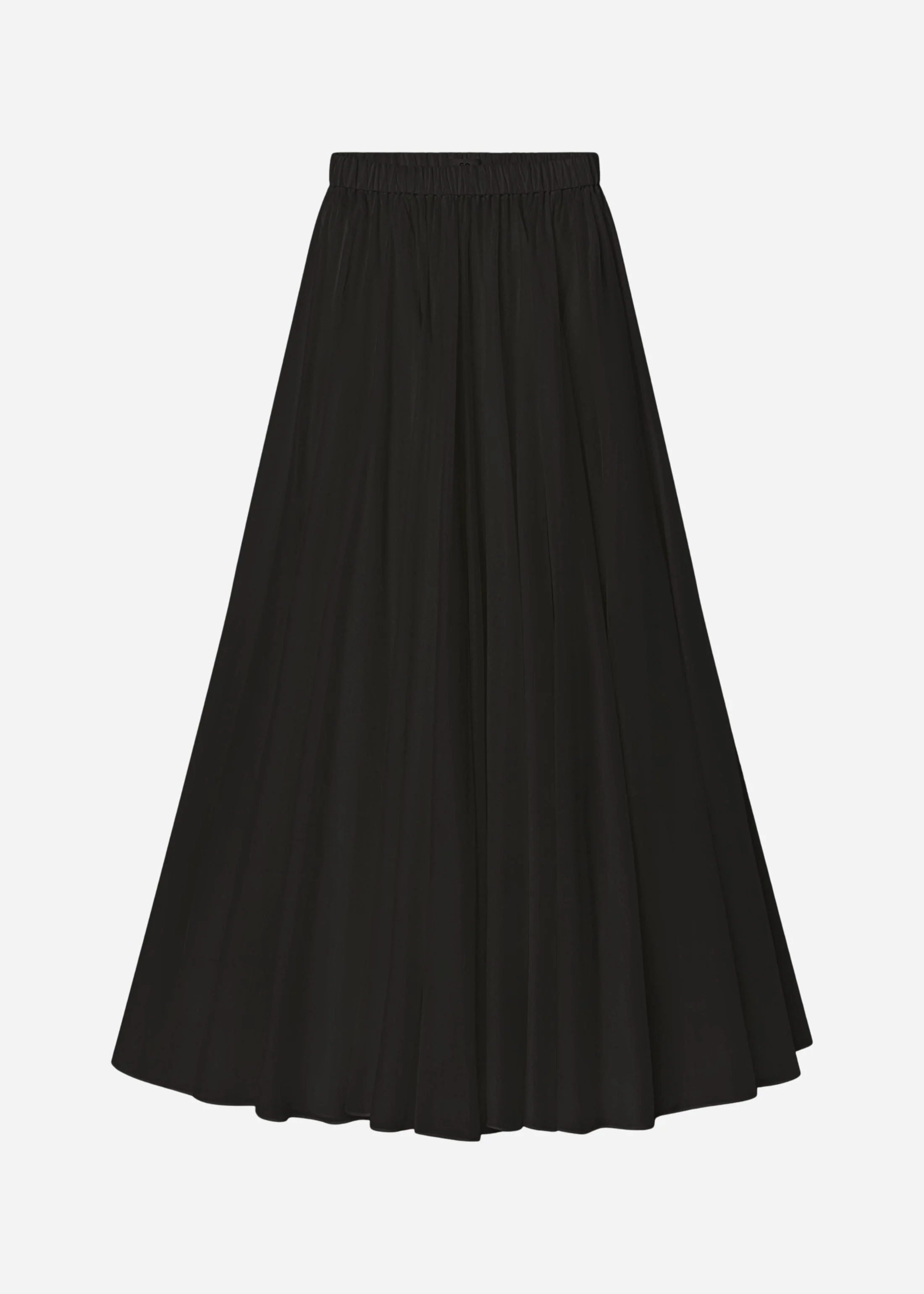 Cut long with light volume, this double layer skirt falls from an elasticated waistband and opens into soft gathers for fluid movement. A sheer outer layer creates depth and subtle transparency, floating over an underlayer that keeps the line clean. Crafted in a lightweight cotton silk blend for a smooth hand and quiet finish. Details - Black - 75% Cotton, 25% Silk - Pockets - Dry Clean Only - Style Number: 3374CSVS Size & Fit - Skirt is voluminous with a double layer construction - Top layer measures 44.5" from top to bottom hemline - Bottom layer measures 39.5" from top to bottom hemline - Model Height is 179 cm / 5'11 and wears size Small