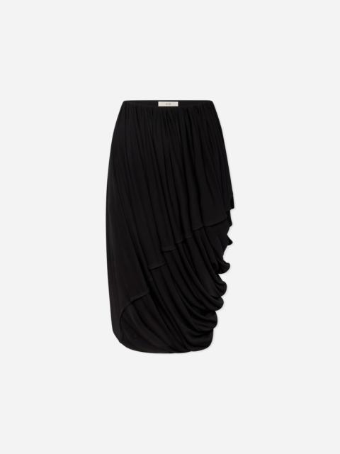Effortless structure in a fluid silhouette. Crafted from soft viscose, this sculptural skirt features artful draping and a clean, tapered hem. Designed to sit on the low waist with an invisible zip closure, it falls to approximately 15" in length. Details - Ivory - 100% Viscose - 3383SJVI-PF25 Size & Fit - Designed to sit at the low waist. - S= 28” in waistband circumference. 2” difference between sizes. - Model is 5'10" and wears a size small