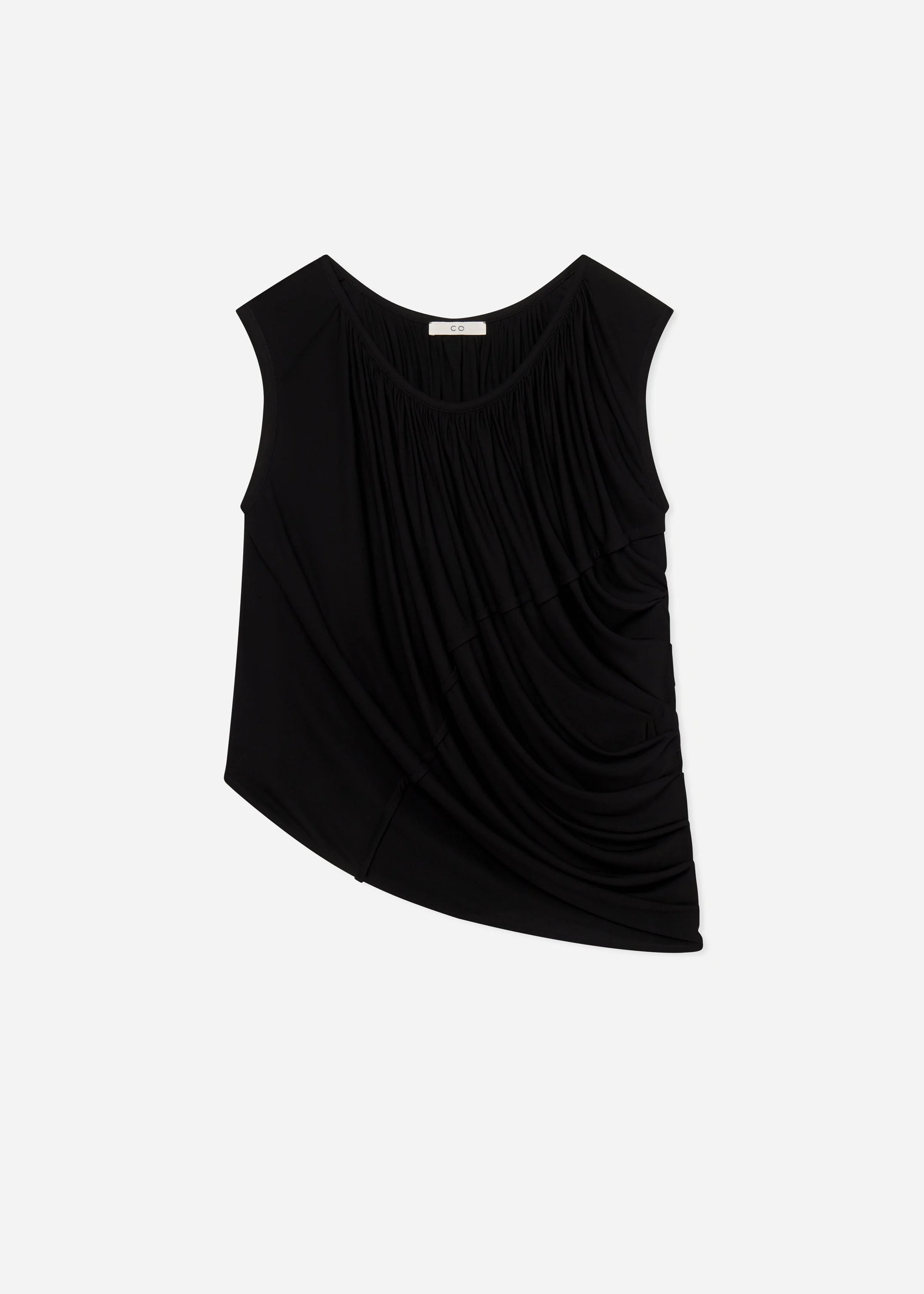 A modern take on timeless elegance. This sleeveless top is crafted from a light weight crepe and features a round neckline with delicate cap sleeves. Asymmetric draping creates graceful movement and a flattering silhouette. Effortlessly refined—perfect for dressing up or down. Details - Black - 100% Viscose - Dry Clean Only - 2645SJVI-PF25 Size & Fit - True to size. - Relaxed Fit.