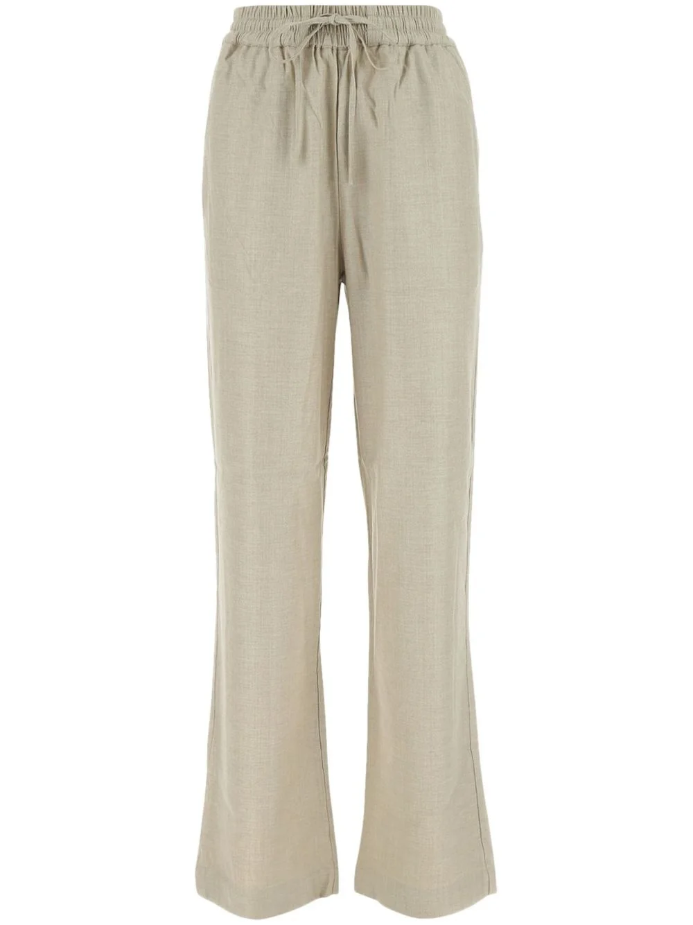drawstring straight-leg trousers Highlights - Beige - Wool blend - Elasticated drawstring waistband - Two side inset pockets - Straight leg - Flared hem Imported Composition Wool 61%, Viscose 28%, Lyocell 10%, Spandex/Elastane 1%