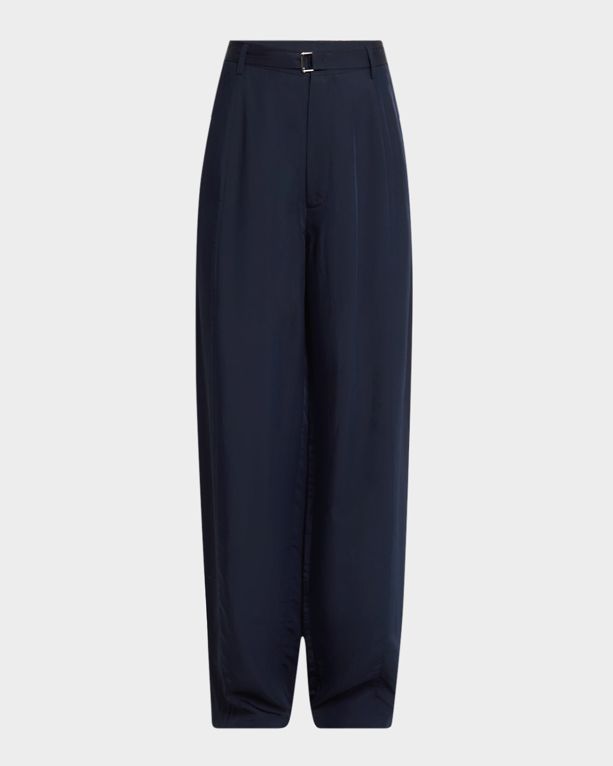 Drop-Crotch Pleated Straight-Leg Pants With Belt