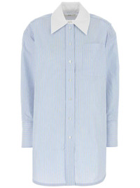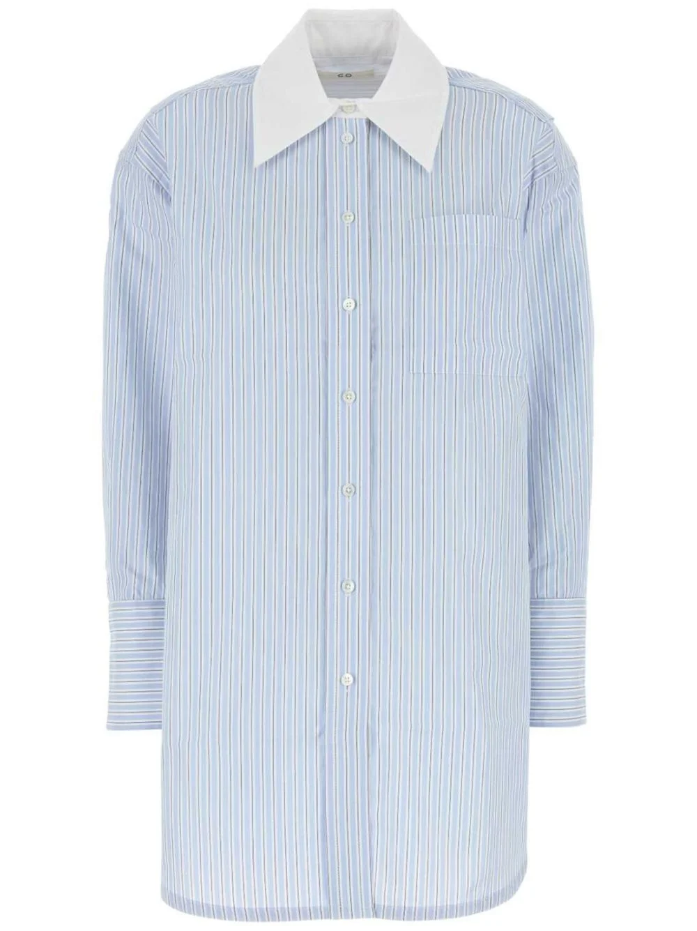 striped shirt Highlights - Light blue - Front button fastening - Chest patch pocket - Contrasting collar - Drop shoulder Imported Composition Cotton 85%, Silk 15% Washing instructions Read Manufacturer Guidelines