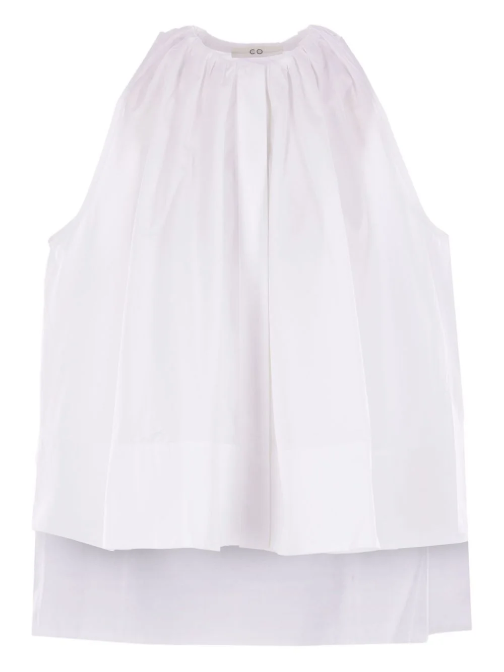 gathered-detailing top Highlights - White - Sleeveless design - High neckline - Pleat detailing - Layered effect - Flowing silhouette Imported Composition Cotton 100%