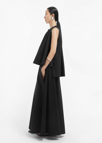 A sleeveless tunic cut in crisp cotton sateen with a soft sheen. Gentle gathering at the neckline gives quiet volume and an easy A-line shape. The high–low hem lifts away from the body and adds movement. Details - Black - 100% Cotton - Sleeveless - Lightweight - Dry Clean Only - Style Number: 1413LCSP Size & Fit - Intended for an oversized fit - Falls to the hip in front and lower hip at the back - Model Height is 179 cm / 5'11 in