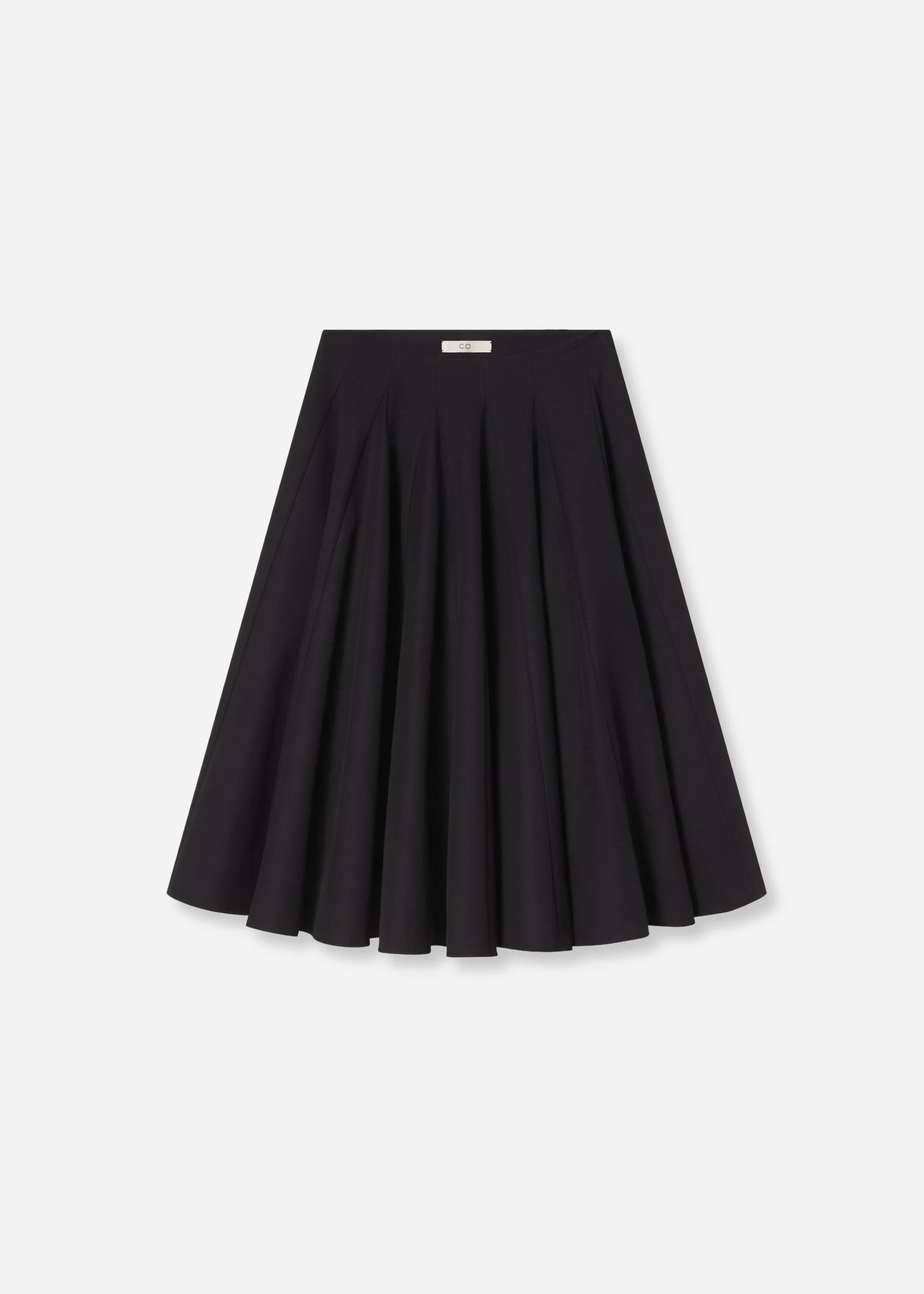 A sculptural take on the everyday skirt, cut in cotton pique for subtle texture and quiet structure. Designed to sit high on the waist, it opens into a godet silhouette that holds its shape while moving with ease. Finished with discreet side pockets and a clean side zip, it brings polish to simple styling from day through evening. Details - Black - 100% Cotton - Pockets - Concealed Side Zipper - Dry Clean Only - Style Number: 3318SCPP Size & Fit - Cotton pique with a structured, breathable hand - High rise, fitted through the waist and hip - Godet silhouette with a full midi sweep - Model is 179 cm (5'11") and wears a size Small