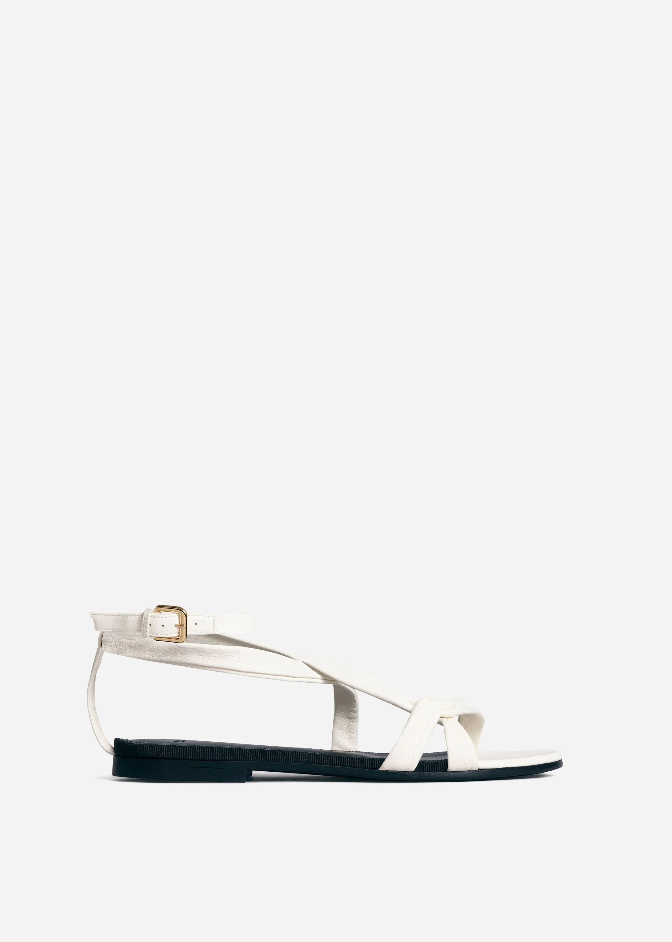 Crafted from soft Nappa leather, this contemporary Greek sandal features flat straps for superior comfort and a gold buckle closure. Expertly made in Italy, it combines elegance with everyday wearability. Details - Ivory - 100% Leather - Made in Italy - Style Number: 0048NAP-S24 Size & Fit - True to size - Heel Height 5mm