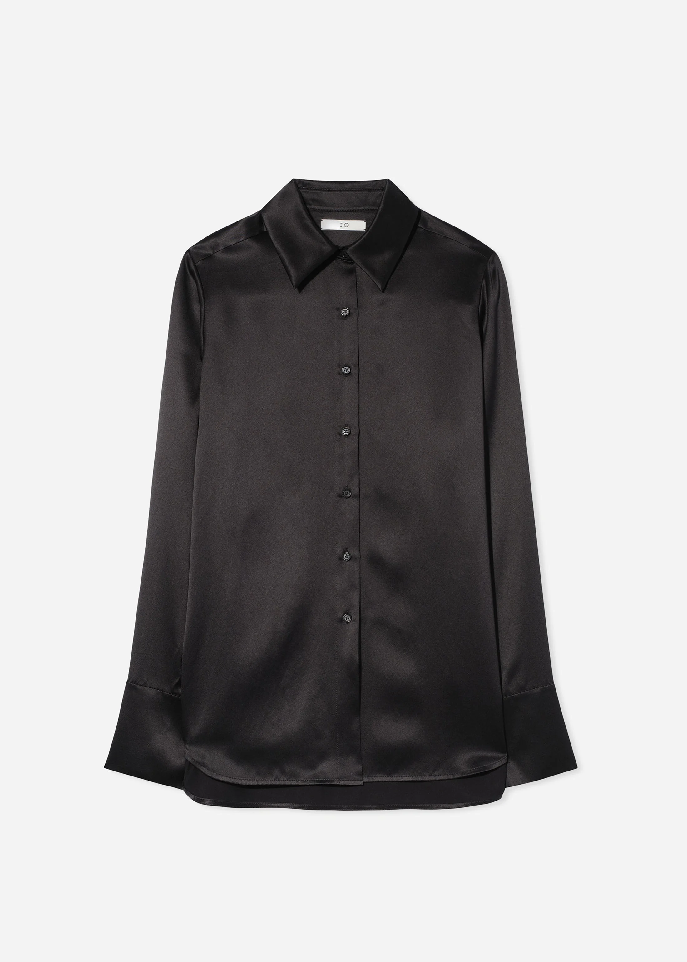 This elegant button-down shirt is crafted from sumptuous 16mm silk satin, offering a relaxed fit that drapes beautifully for effortless sophistication. The French seams ensure a refined finish and durability, while the dark horn buttons add a subtle yet distinguished contrast. Perfect for elevating both professional and evening wardrobes. Details - Style Number: 1866CSSC-CORE Size & Fit - True to size - Approx 32" in length - Model is 5'10" and wears a size Small.