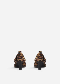 These leopard printed heeled pumps feature premium calf hair leather. With a pointed toe, elasticized topline for a secure fit, and convenient pull tabs, they blend style and practicality. Expertly crafted in Italy, they offer timeless elegance for any wardrobe. Details - Leopard Print - 100% Calfskin - Made in Italy - Style Number: 0923PDC-LPD Size & Fit - True to size