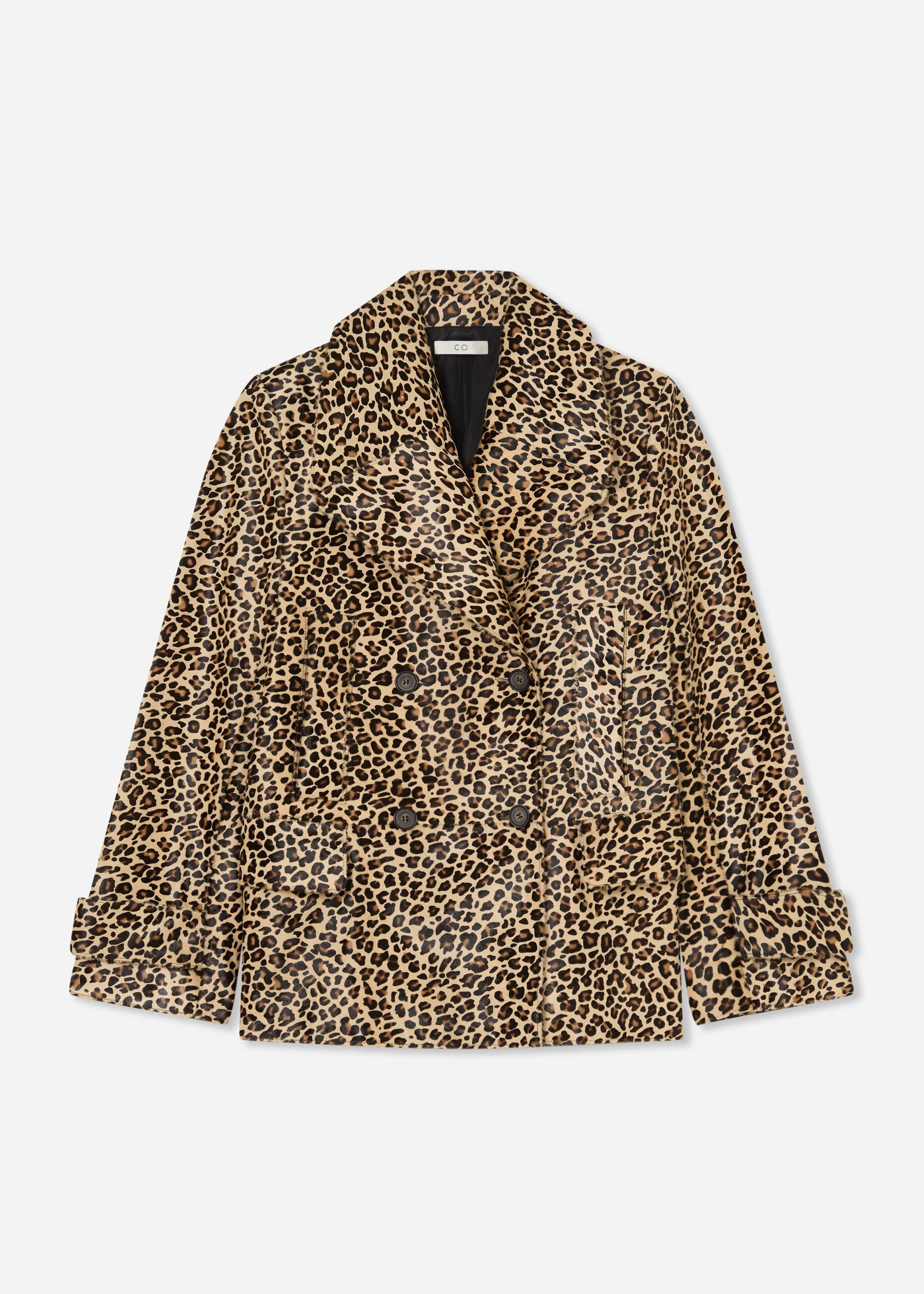A bold reinterpretation of a classic silhouette, this peacoat is crafted from hair-on-cowhide, printed in an allover leopard motif. The structured cut features wide notched lapels, a double-breasted front, and a boxy, abbreviated shape. Details - Leopard - 100% Leather - Fully Lined - Double Breasted - Dry Clean Only - Made in Italy - Style Number: 6766ACHL-F25 Size & Fit - Designed for an oversized fit.