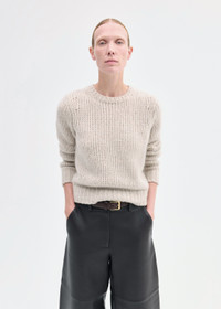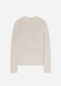 A refined essential, reimagined in soft, medium-weight cashmere. This classic crewneck is thoughtfully tailored for a relaxed yet structured silhouette that holds its shape. Detailed with ribbed finishes at the neckline, cuffs, and hem, it offers timeless versatility in a cool, understated beige—ideal for effortless layering year-round. Details - Arctic Beige - 75% Cashmere 25% Cashmere - 8888TLAM-PF25 Size & Fit - Gauge 3GG - Design to be structured and fitted.