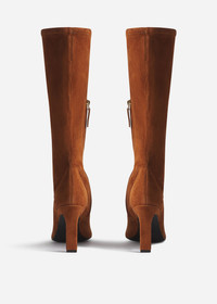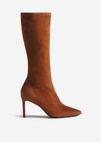Crafted in Italy with exceptional attention to detail, the Heeled Leather Boot in Cognac combines timeless elegance with superior craftsmanship. Its rich cognac suede leather offers a warm, versatile hue that complements both casual and formal attire. Designed with a comfortable heel, this boot provides a graceful lift while ensuring all-day wearability. Details - Cognac - 100% Goat Skin - Zipper - Made in Italy - Style Number: 0764STS-COG Size & Fit - True to size. - Designed to be fitted around calf.