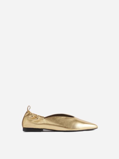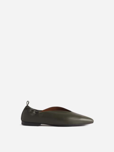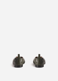 Designed with a padded sole for exceptional comfort during prolonged wear, this flat showcases smooth calfskin leather that delivers a rich texture and lasting resilience. It features a sleek pointed toe, an elasticized heel for a secure fit, and pull tabs that add both convenience and a subtle touch of style. Expertly crafted in Italy, this shoe represents timeless elegance and superior craftsmanship. Details - Olive - 100% Leather - Made in Italy - Style Number: 0062NAP-PF25 Size & Fit - True to size - Engineered with a narrow last and an elasticized heel counter to enhance fit adaptability and rear foot support.