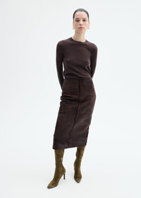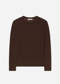 A lightweight long-sleeve top in fine cashmere, designed for a sleek, second-skin fit. Finished with ribbed detailing at the neckline and hem. Details - Chocolate - 100% Cashmere - Lightweight - Ribbed Detailing on Neckline and Hem - Dry Clean Only - 7380BCM-Core Size & Fit - Close fit throughout the body. - Size up for a more relaxed silhouette.