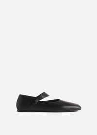 A modern take on the classic Mary Jane, this ballet flat is crafted from supple Italian calfskin with a soft matte finish. The rounded toe and single strap with a covered button closure evoke a sense of quiet elegance. Designed with a minimal 10mm heel for all-day comfort. Details - Black - 100% Calfskin - Made in Italy - Style Number: 0111NAP-PF25 Size & Fit - True to size with a refined, close fit. The 2.5" toe width offers a streamlined silhouette ideal for narrow to regular feet. - 10mm heel