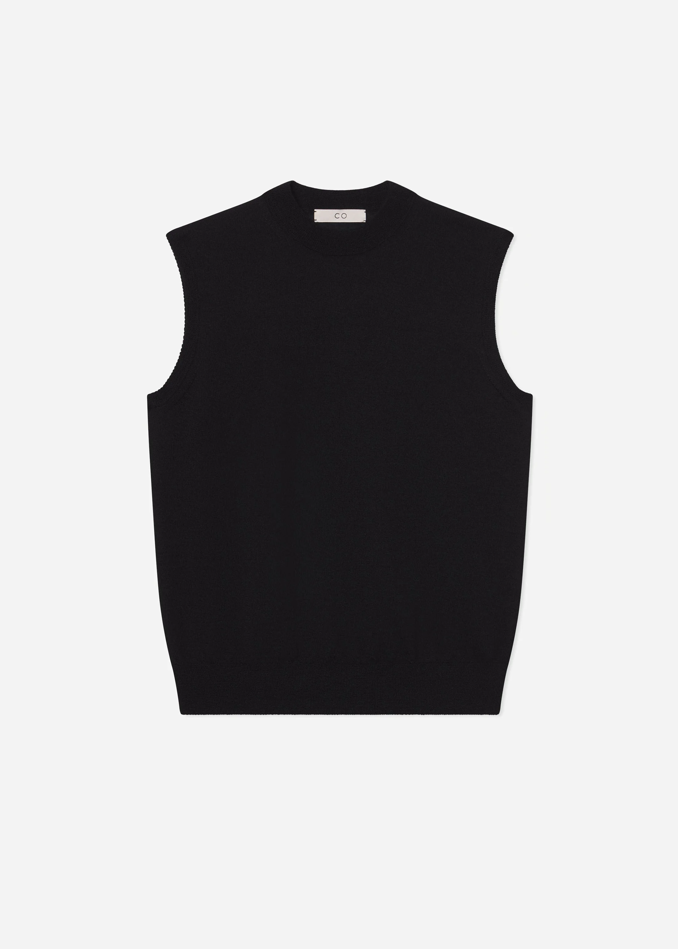 This refined sleeveless tank showcases luxurious baby cashmere in a timeless silhouette. Finished with elegant ribbed detailing along the neckline, armholes, and hem for a polished, structured fit. An essential layering piece that effortlessly elevates any wardrobe with understated elegance and uncompromising softness. Details - Black - 100% Cashmere - Dry Clean Only - Style Number: 7171BCM-PF25 Size & Fit - True to size. - Model is 5'10" and wears a size small