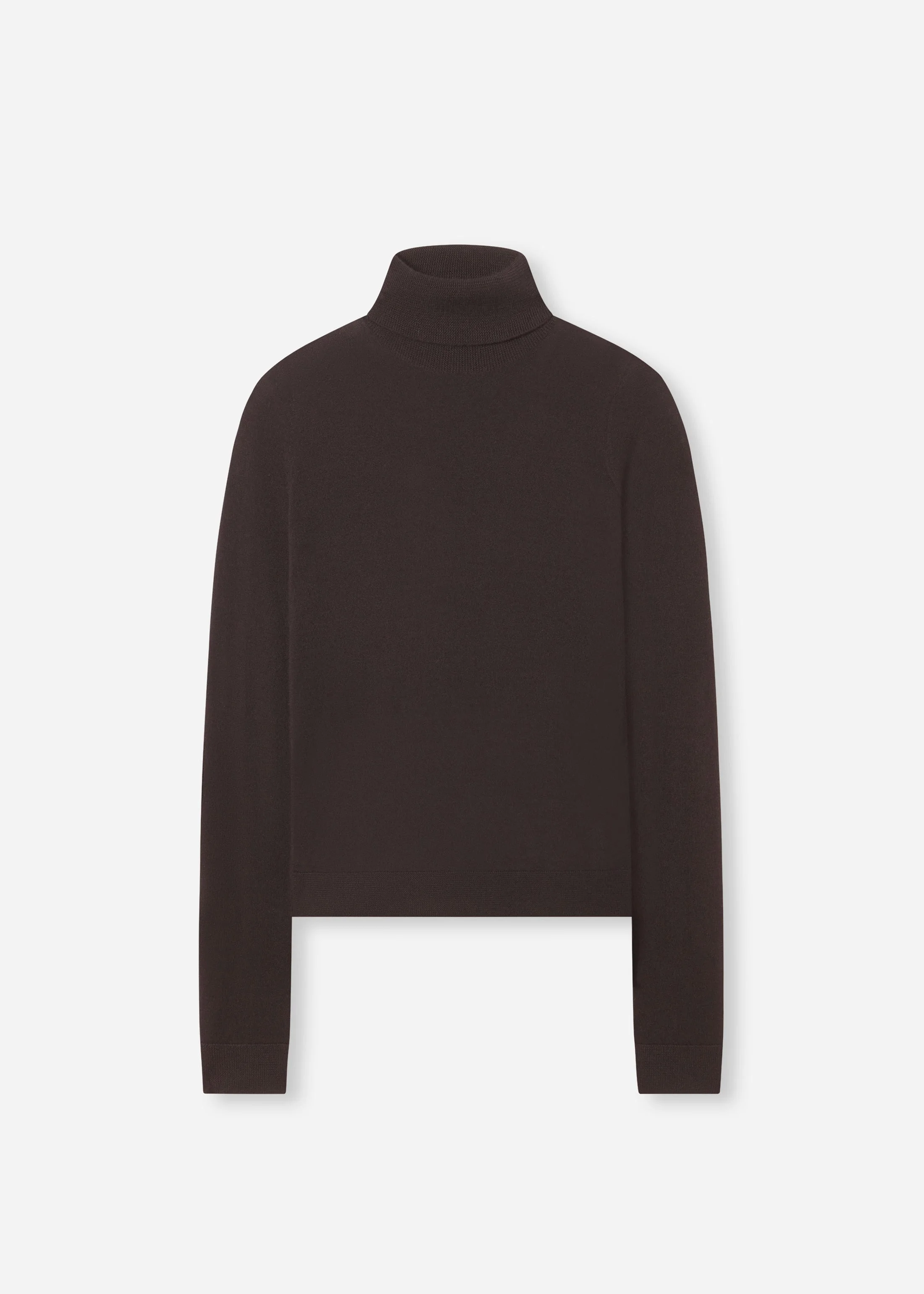 This slim turtleneck in fine cashmere offers a refined silhouette with its fitted knit design, perfect for layering or wearing alone. Crafted from luxurious fine gauge cashmere, it provides exceptional softness and warmth. Ribbed detailing at the hem, cuffs, and neck adds subtle texture and structure, enhancing its elegant appeal. Details - Chocolate - 100% Cashmere - Dry Clean Only - 7659BCM-CORE Size & Fit - Designed for a slim fit. Take your normal size. - Model is 5'10", 34" chest and wears a size Small.
