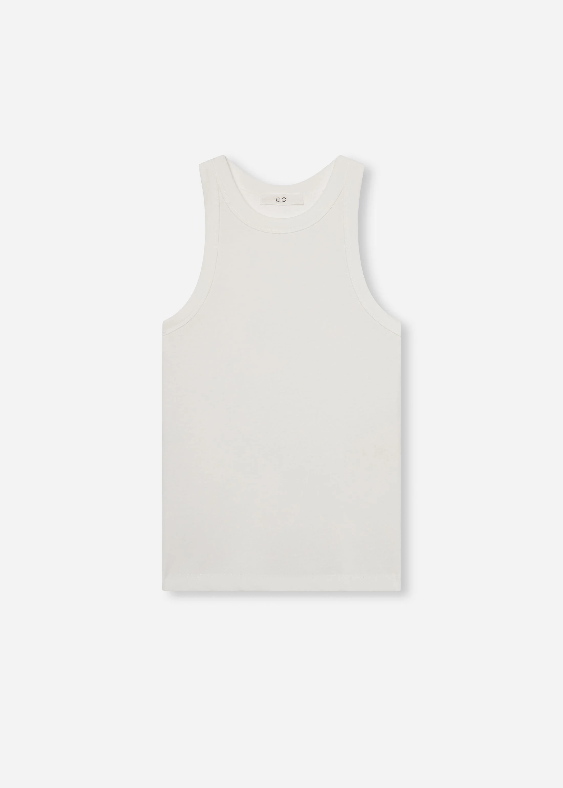 This tailored sleeveless tank features a refined racerback design and is crafted from luxurious Italian cotton jersey. It is detailed with a central seam along the back for a polished finish. Details - White - 100% Cotton - Style Number: 8200NLCJ-CORE