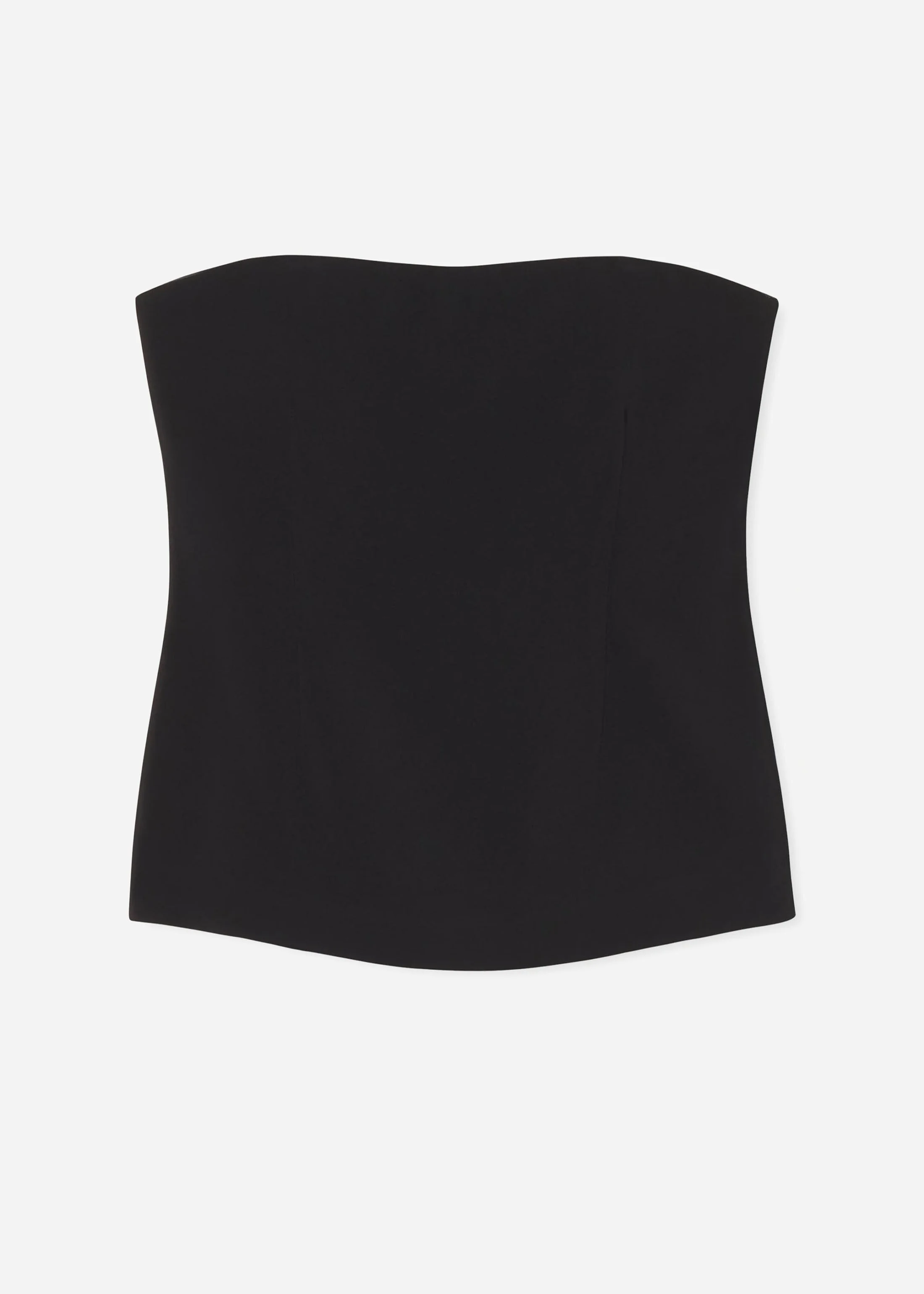 Strapless bustier top with interior boning detail, slim silhouette, and hip length for easy tucking. Details - Strapless black bustier top - Fitted silhouette - Flexible boning - Invisible back zip - 97% Viscose 3% Elastane - 1178MBND-ESSN - Black Size & Fit - Fits true to size. Take your normal size.
