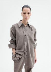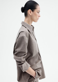 Tailored in a soft wool-cashmere blend, this oversized shirt offers structure with a plush, tactile finish. Designed with a classic point collar, single chest pocket, and tonal buttons, it’s a refined take on menswear-inspired shirting. Wear it layered or as a standalone piece for a look that balances ease and polish. Details - Oatmeal - 90% Virgin Wool 10% Cashmere - Dry Clean Only - Style Number: 1730BWCF-F25 Size & Fit - Runs long. - Designed to be slouchy. - Size down if you are petite.