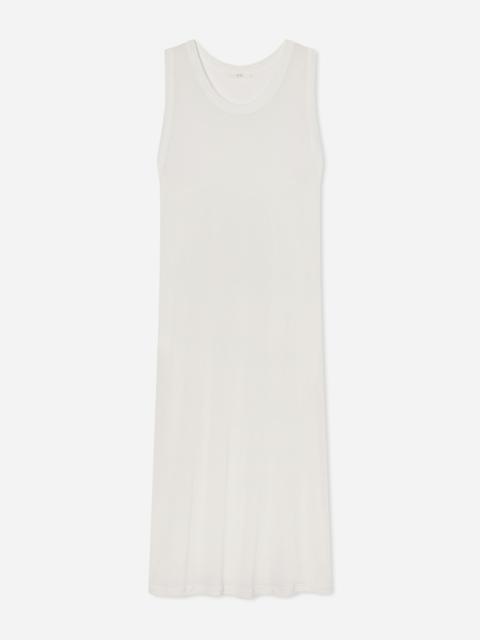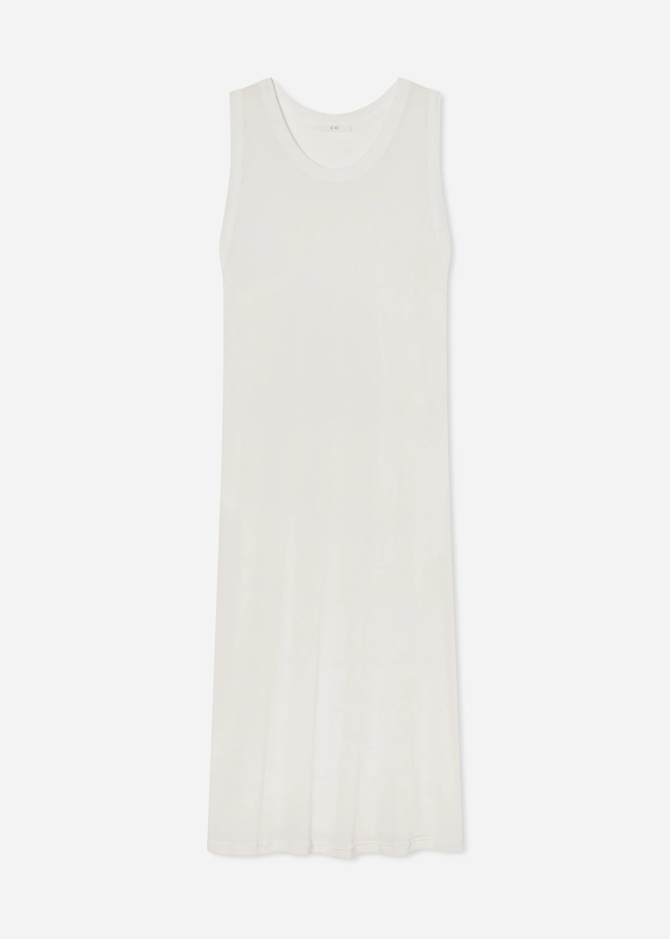 A lightweight tank dress crafted from sheer cotton jersey with a softly draped silhouette and minimalist finish. Designed with a scoop neckline and exaggerated armholes, it skims the body for an effortless, barely-there feel. Ideal for layering or warm-weather ease. Fits true to size. Details - 4728NCR-CORE - 100% Cotton - White Size & Fit - Relaxed fit