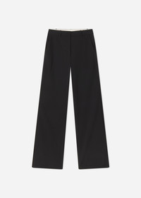 Tailored in stretch virgin wool, these silk trimmed tuxedo trousers sit at the natural waist and are designed to elongate the leg with a clean flat-front and subtle flare at the hem. Unlined for ease and drape, they offer a seasonless, refined silhouette ideal worn long with heels or flats. Details - 95% Virgin Wool 5% Elastane, Trim: 100% Silk - Black - 5322ABSW-CORE Size & Fit - Straight but relaxed it. We recommend sizing down for a sleeker look. - Inseam 33" - The model is 5'10", 26" waist, wears a size 4