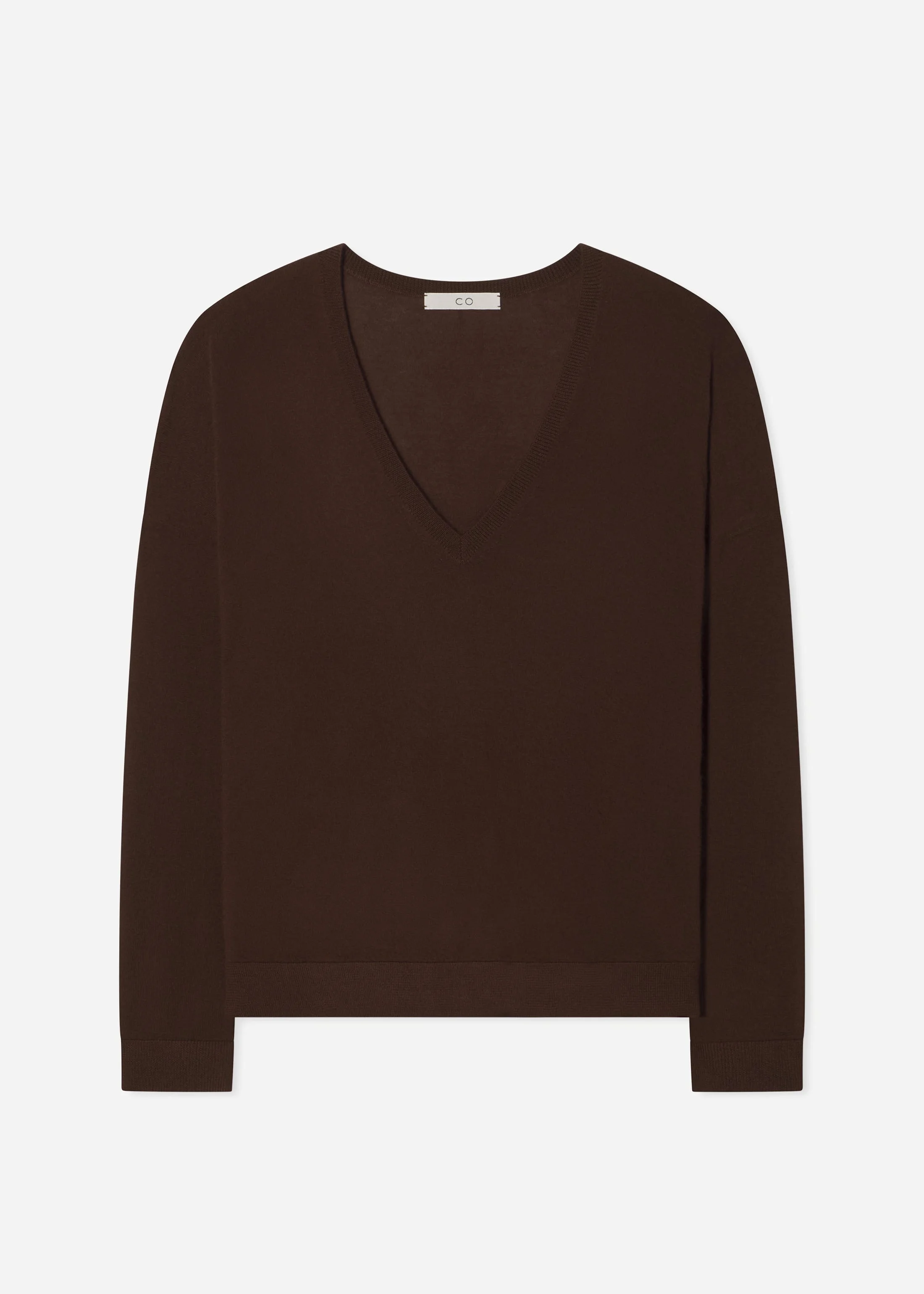 This elegant V-neck top crafted from fine cashmere delivers a sumptuous combination of softness and style. The lightweight knit fabric flows smoothly, ensuring comfort while enhancing a sleek, refined shape. Perfect for layering with sophistication or wearing on its own. Details - Coco - 100% Cashmere - Dry Clean Only - Style Number: 7891BCM-F25 Size & Fit - Designed to be a relaxed fit.