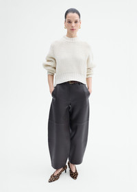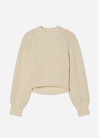 Raglan-sleeve pullover in a chunky directional stitch, crafted from a plush virgin wool-polyamide blend. Designed with a softly cropped, curved hem and exaggerated rib trims for a sculptural silhouette. Details - Ivory - 80% Virgin Wool 20% Recycled Nylon - Dry Clean Only - Raglan Sleeve - Style Number: 7122UPSA-F25 Size & Fit - Designed to be oversized. - Length is cropped.