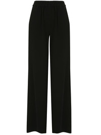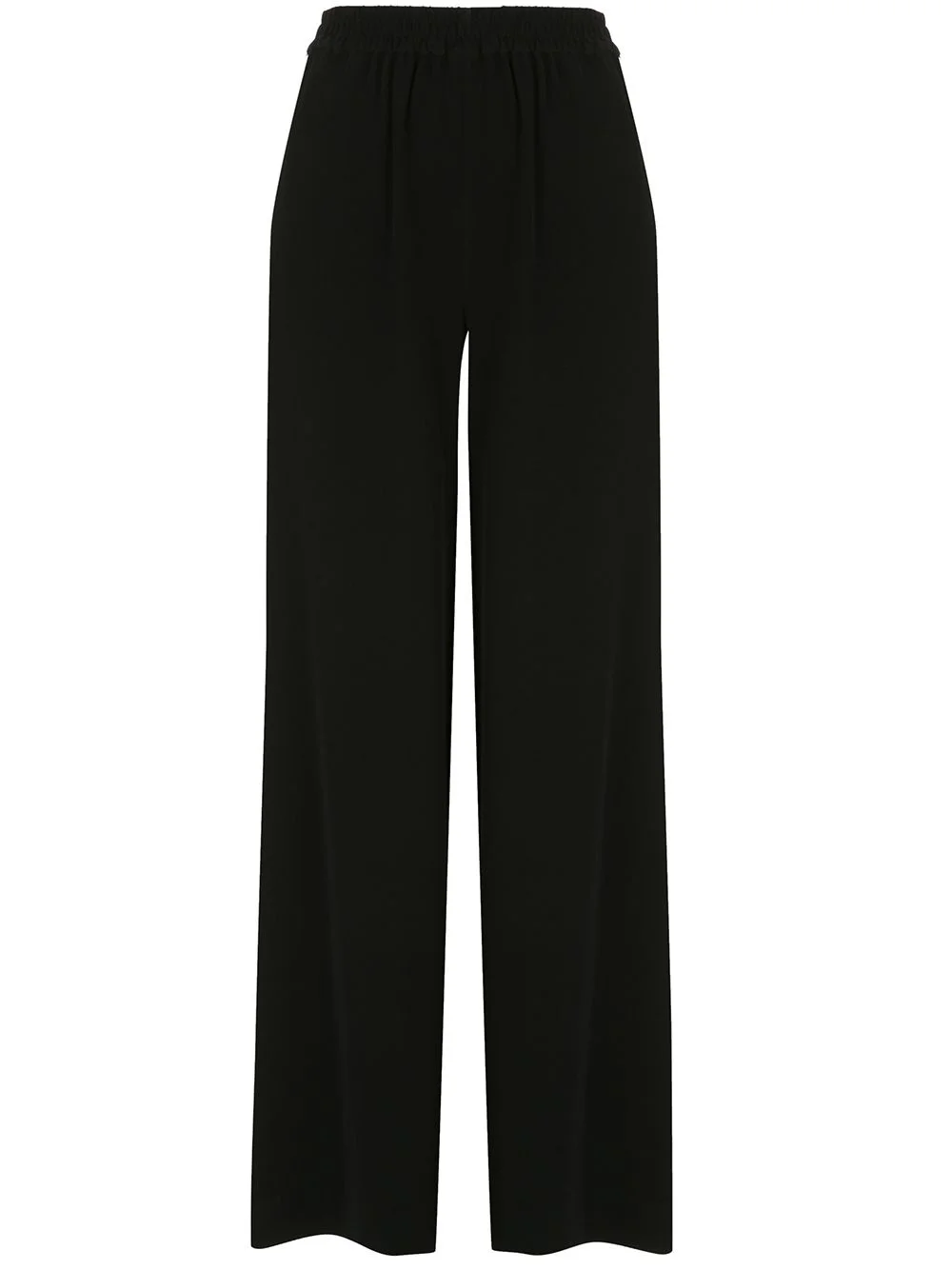 high waisted palazzo trousers Black high waisted palazzo trousers from Co featuring an elasticated waistband, a pull-on style and a wide leg. Imported Composition Triacetate 81%, Polyester 19% SIZE & FIT Model measurements Height 5 ft 10 in(1.77 m) Bust/Chest 33.85 in(86 cm) Hips 33.85 in(86 cm) Waist 24.01 in(61 cm) Washing instructions Dry Clean Only