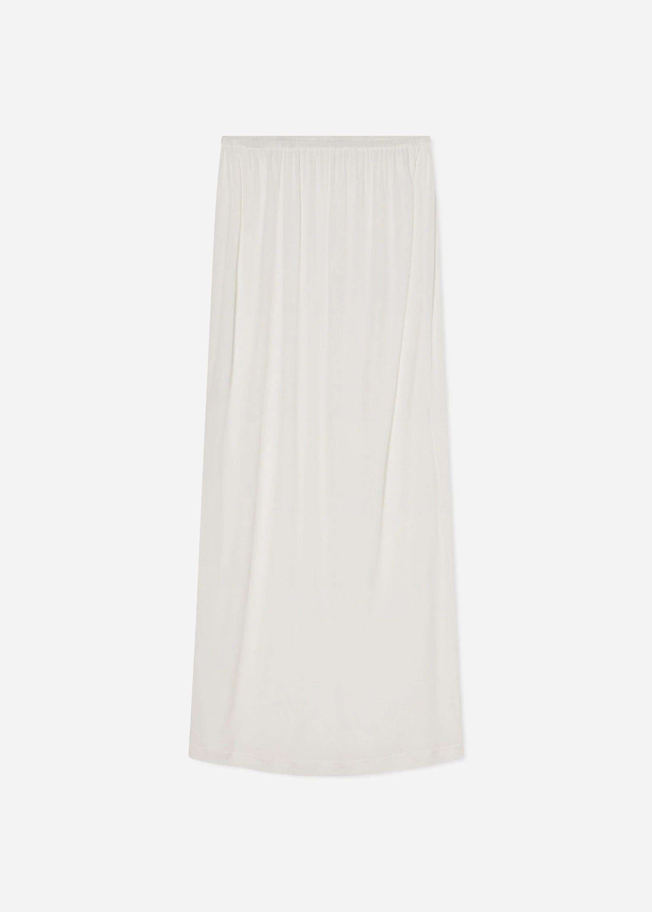 A lightweight, fluid maxi skirt crafted in sheer cotton jersey with a soft drape and airy finish. Designed for a relaxed fit with an elastic waistband, this effortless silhouette moves with ease and layers beautifully. Ideal for warm weather styling or understated layering. Details - 100% Cotton - Ivory - 3080NCR-CORE Size & Fit - Relaxed it with flexible soft waistband.