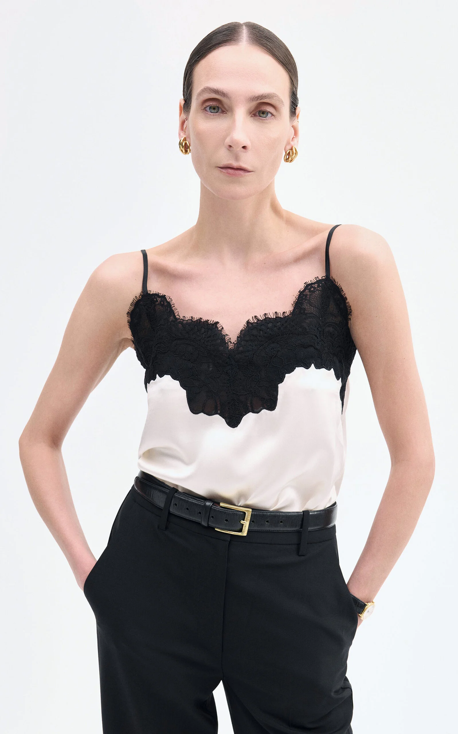 Founded in 2011 by Stephanie Danan and Justin Kern, the name CO reflects the designers’ collaborative partnership, as well as their philosophy behind building a cohesive, complimentary wardrobe. Lace Camisole in Silk Satin. PRODUCT DETAILS - This item is not eligible for expedited shipping - Slip on - Composition: 100% silk - Dry clean - Imported SIZE & FIT - Designed for a slim fit