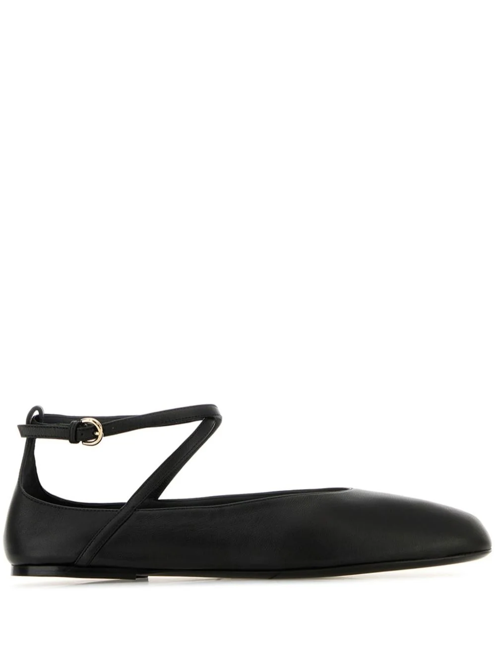 leather ballerina shoes Highlights - Black - Calf leather - Smooth grain - Buckle-fastening ankle strap - Round toe - Branded leather insole - Leather sole Made in Italy Composition Lining: Calf Leather 100% Sole: Calf Leather 100% Outer: Calf Leather 100%