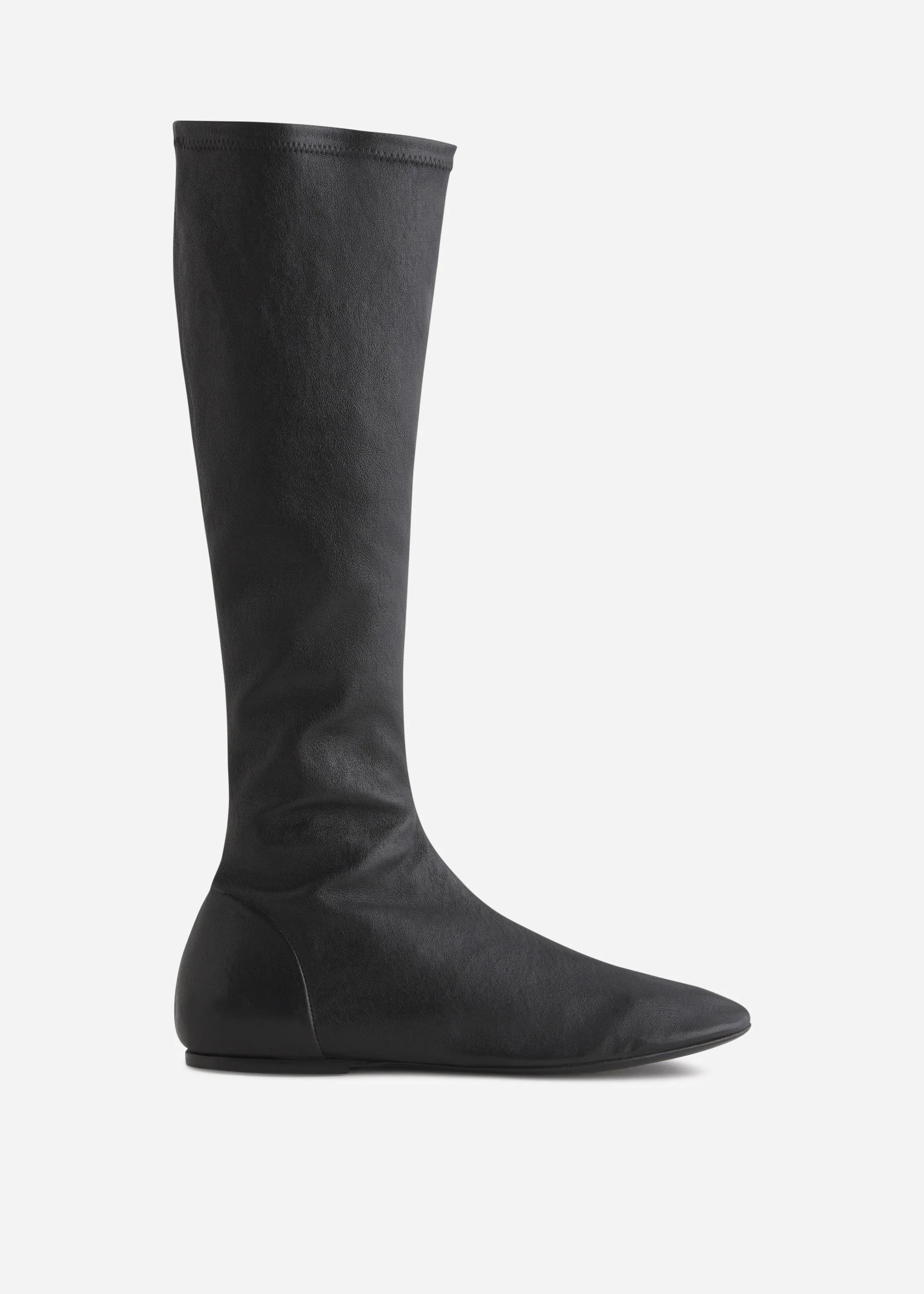 Stretch Leather Knee-High Bootie in Black