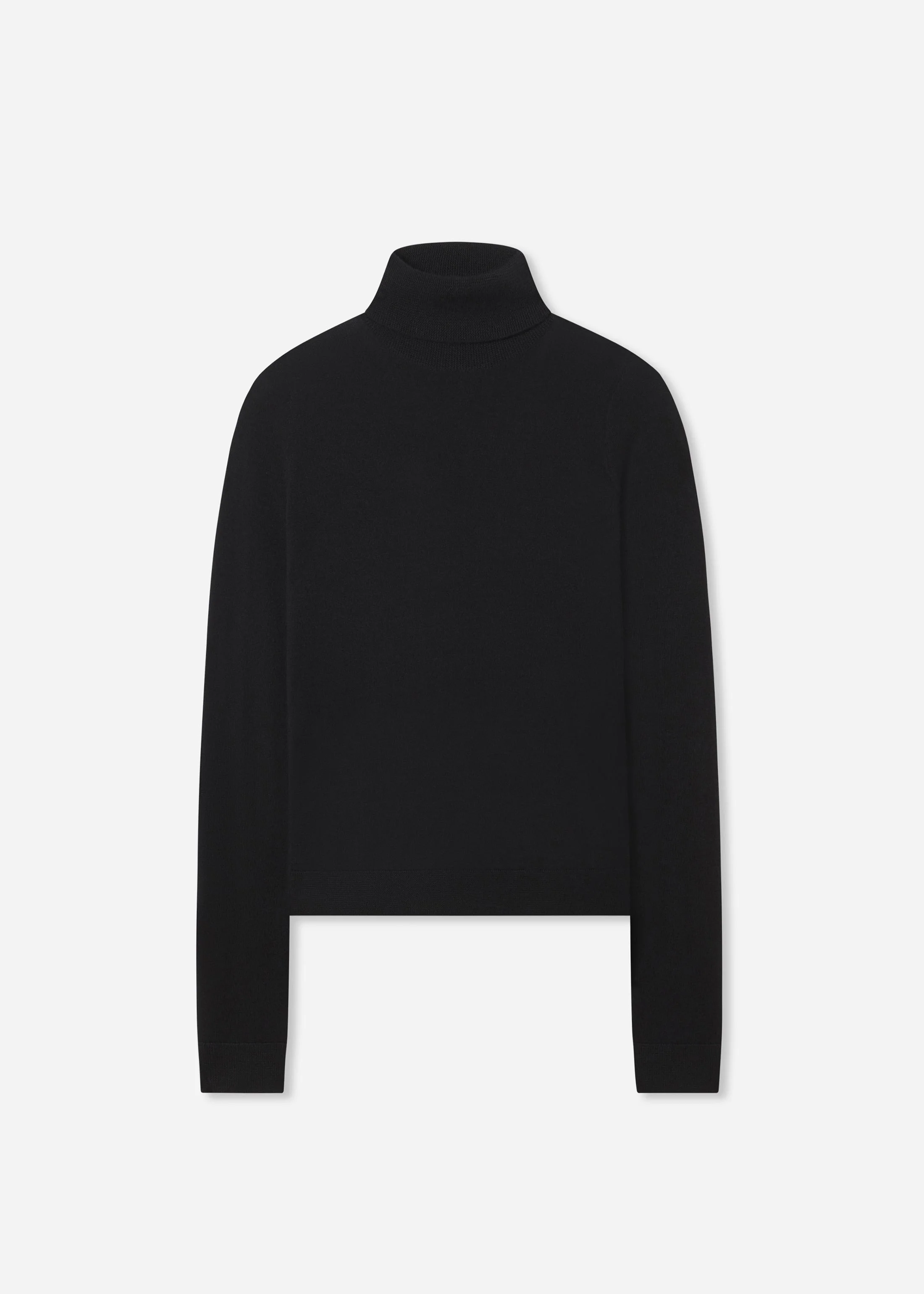 This slim turtleneck in fine cashmere offers a refined silhouette with its fitted knit design, perfect for layering or wearing alone. Crafted from luxurious fine gauge cashmere, it provides exceptional softness and warmth. Ribbed detailing at the hem, cuffs, and neck adds subtle texture and structure, enhancing its elegant appeal. Details - Slim fit - Black - 100% Fine-gauge cashmere - Lightweight - 7659BCM-ESSN Size & Fit - Designed for a slim fit. Take your normal size. - Model is 5'9", 30" chest and wears a size Small.
