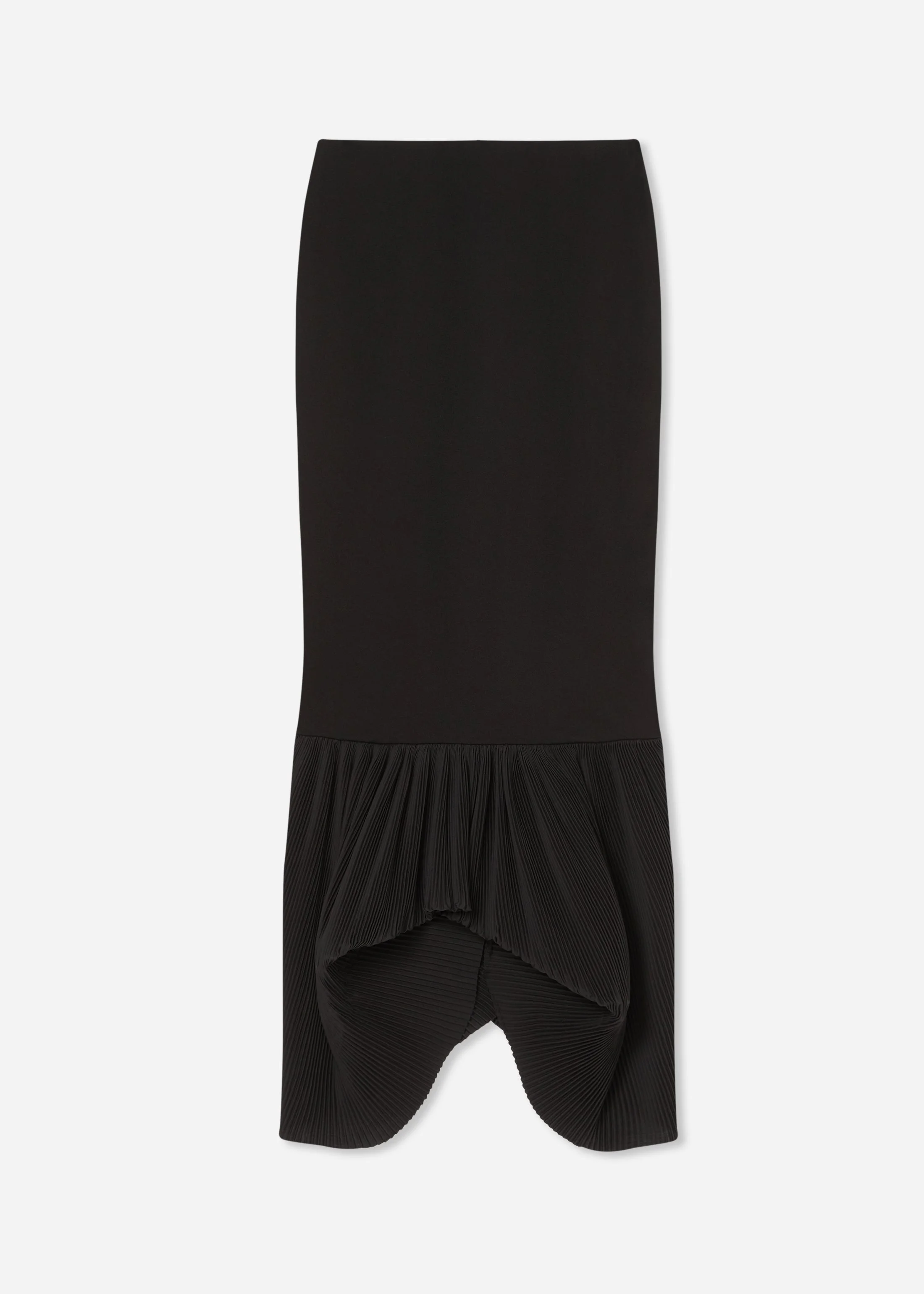 An exploration of contrast and form. This skirt is tailored to a sculpted silhouette that falls fluidly from the waist, defined by a structured ramie-blend body and a pleated peplum hem. Finished with a concealed back zipper and center slit for effortless wear. Details - Black - 54% Ramie, 40% Nylon, 6% Spandex. - Dry Clean Only - Concealed back zipper closure - Style Number: 3757NLLS-PS26 Size & Fit - Fits true to size - Designed for a close fit through the waist and hips - Fabric has stretch - Front measures 38.5" - Model Height is 179 cm / 5'11 in