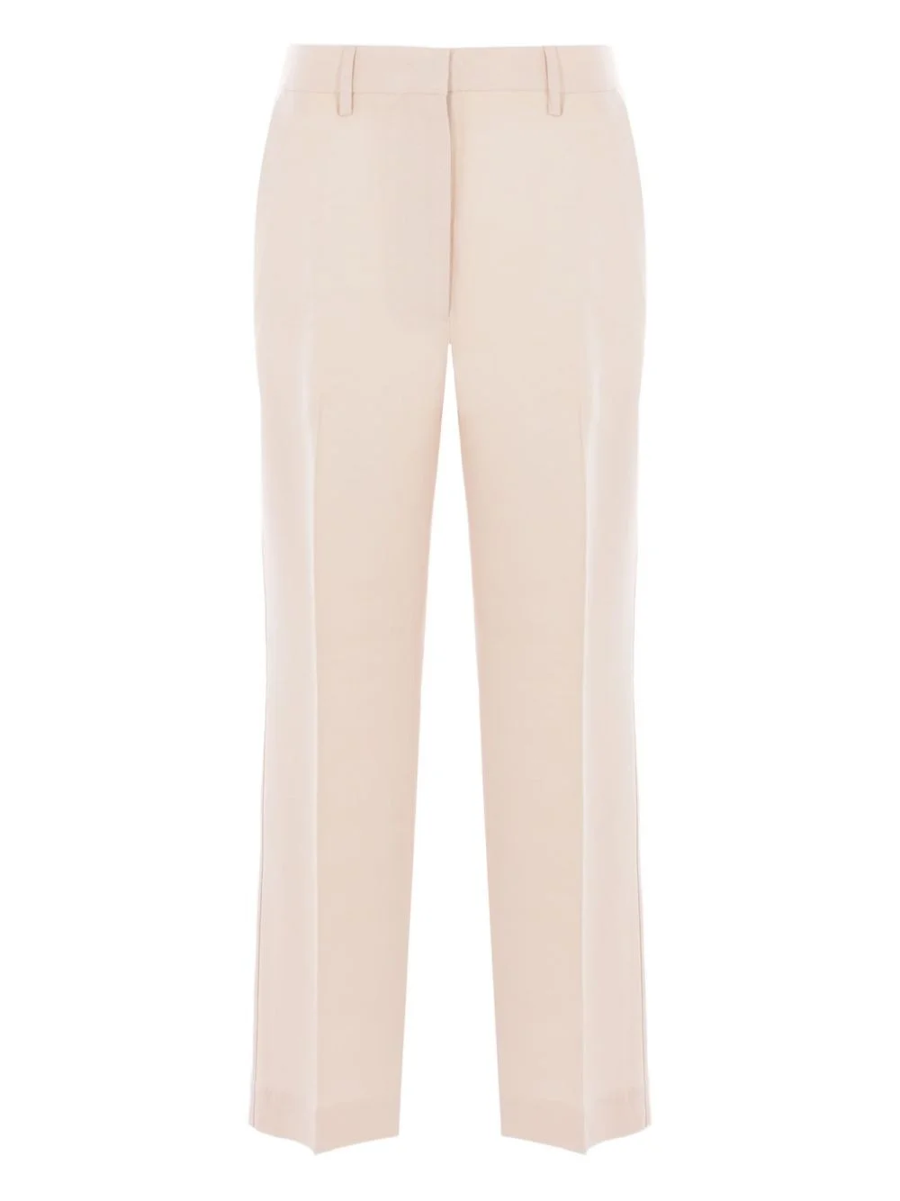 pressed-crease trousers Highlights - Light pink - Concealed front fastening - Two side slit pockets - Two rear jetted pockets - Belt loops Imported Composition Viscose 70%, Virgin Wool 30%