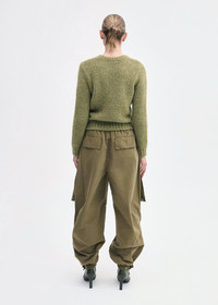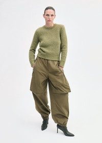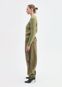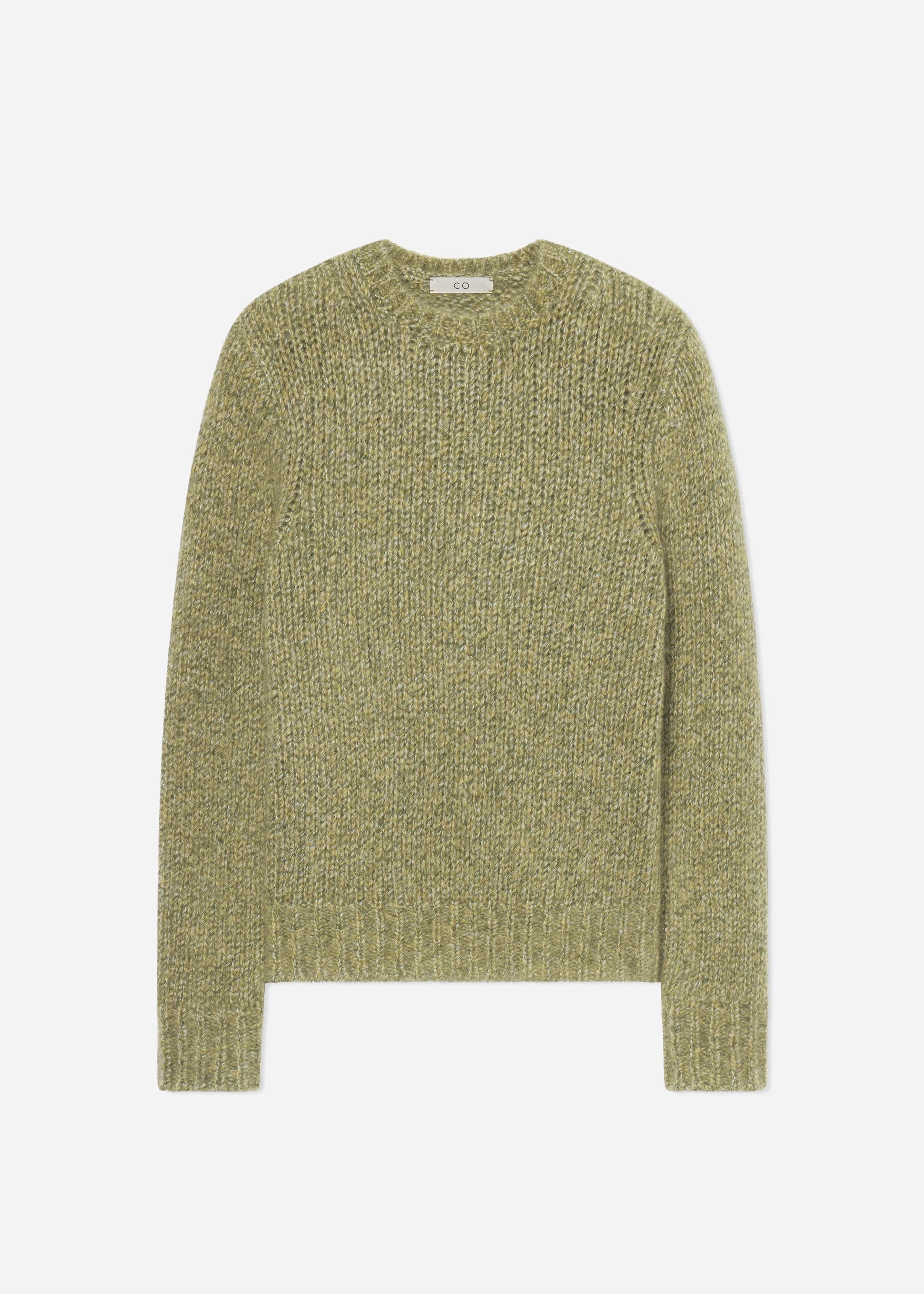 This sophisticated essential is crafted from soft, medium-weight cashmere. The classic crewneck is designed with a relaxed yet structured fit that retains its shape. Ribbed trims at the neckline, cuffs, and hem add timeless detail, while the earthy moss green hue makes it perfect for seamless layering. Details - Mossy Green - 75%Cashmere 25% Silk - Dry Clean Only - Style Number: 8888TLAM-PF25 Size & Fit - Designed to be fitted and structured - Gauge 3GG
