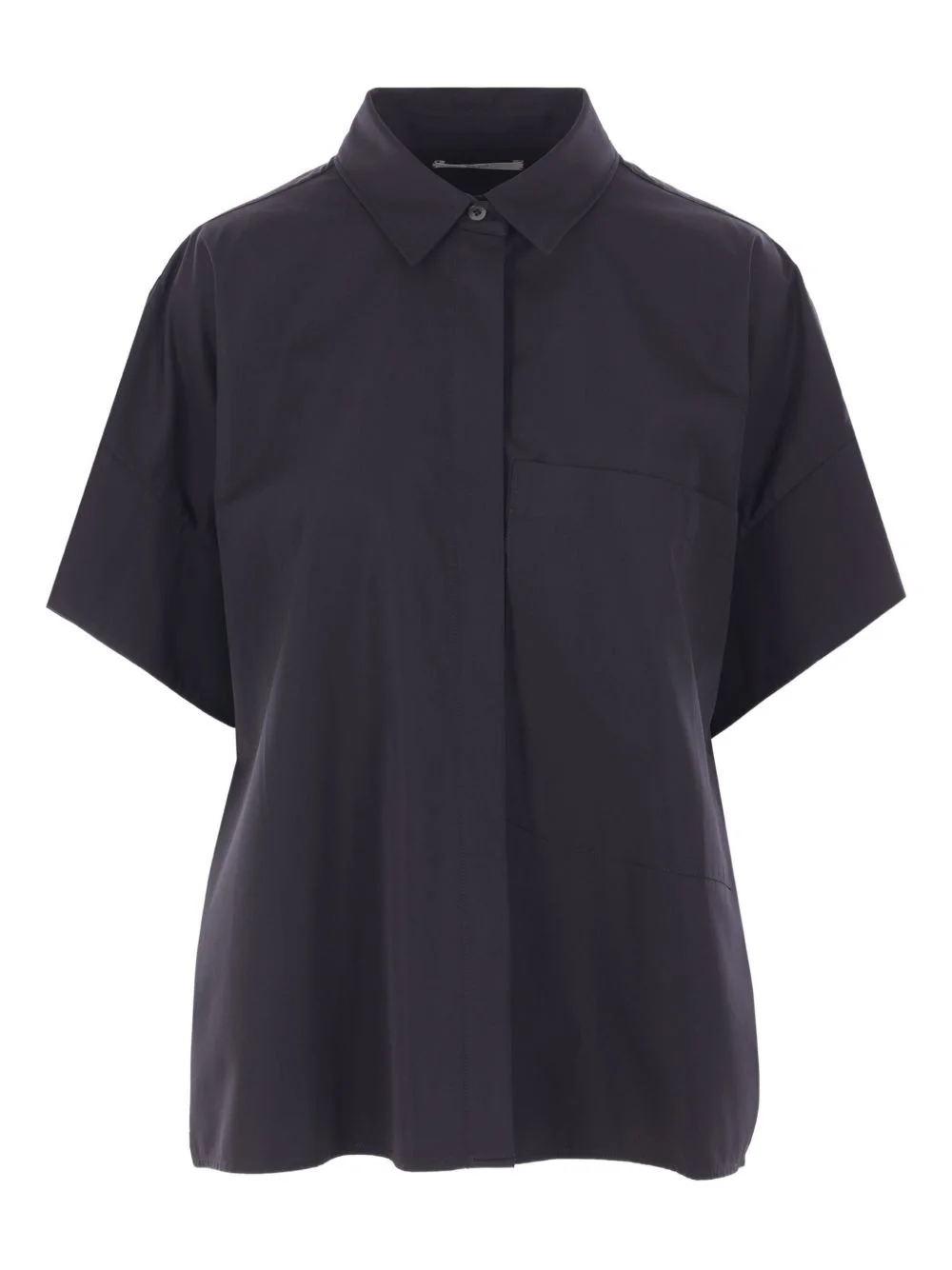 short-sleeve cotton shirt Highlights - Black - Cotton - Short sleeves - Hidden button-fastening - Collared neckline - Pocket detail Imported Composition Cotton 100% Washing instructions Read Manufacturer Guidelines
