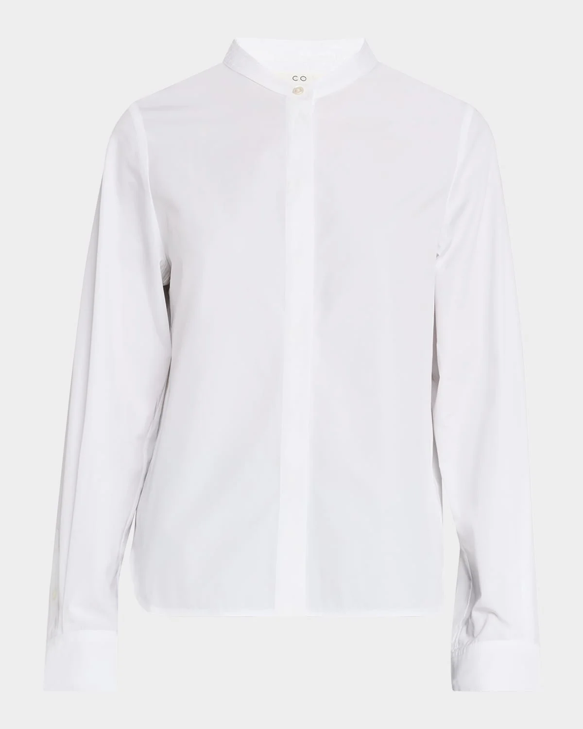 - Co shirt - Stand collar; concealed button front - Long sleeves; button cuffs - Slim fit - Cotton - Imported