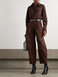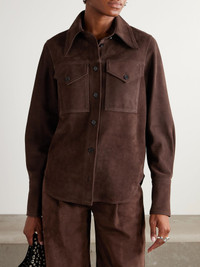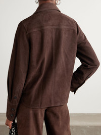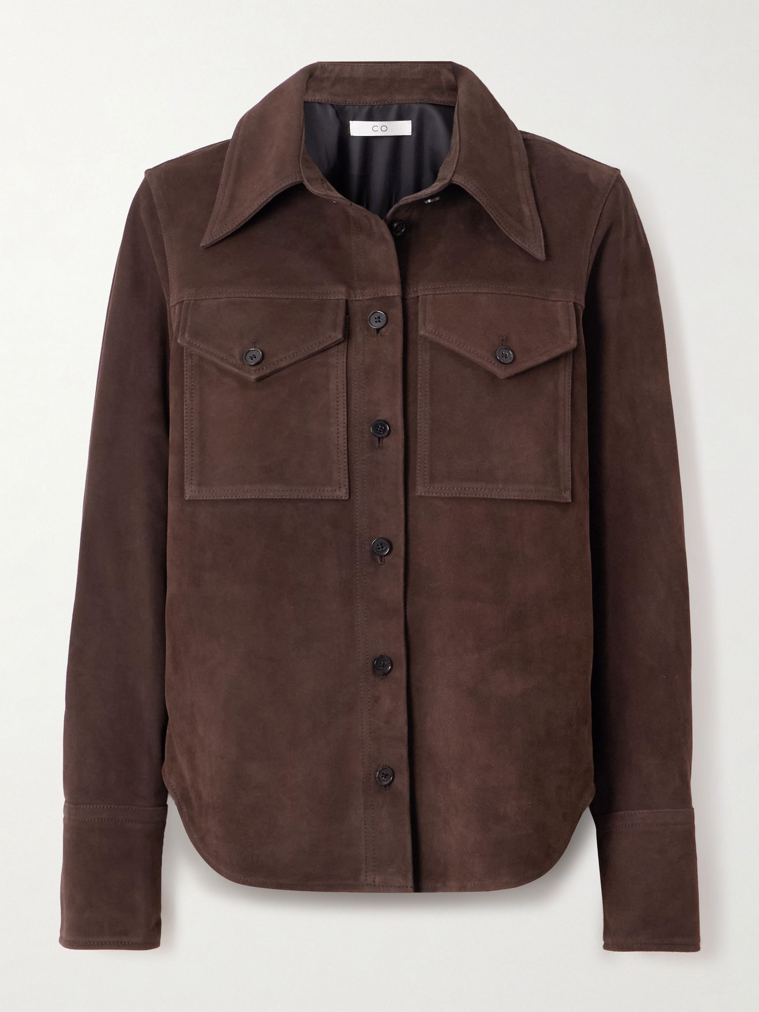 CO's shirt is cut from luxurious suede in a rich chocolate-brown shade, which feels so perfect for the season. Designed to be worn with the matching pants in our edit, it has an extra pointy collar and buttoned chest pockets. Size & Fit - Fits true to size, take your normal size - Designed for a slightly loose fit - Supple, non-stretchy suede - Model is 180cm/ 5'11" and is wearing a size Small Model measurements: - Bust: 75cm/ 29.5" - Waist: 60.5cm/ 24" - Hip: 88.5cm/ 35" Details & Care - Chocolate suede - Button fastenings through front - 100% suede (Goat); buttons: 100% horn (Buffalo); lining: 100% acetate - Partially lined - Specialist clean