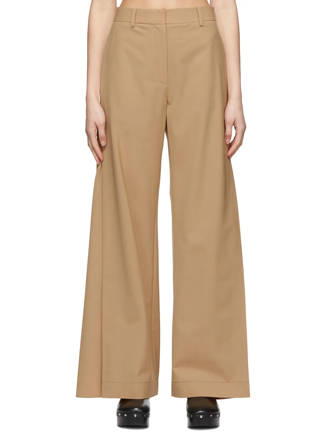 Plain-woven stretch polyester and virgin wool-blend trousers. · Belt loops · Zip-fly · Four-pocket styling Supplier color: Camel Body: 53% polyester, 43% virgin wool, 4% elastane. Lining: 100% cupro. Made in Italy 221366F087008