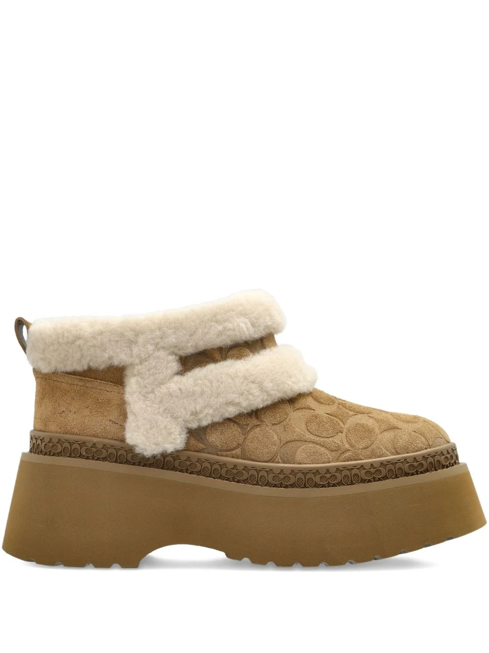 65mm Christina platform boots Highlights - Light brown - Platform sole - Embossed pattern - Pull tab at the rear - Round toe Imported Composition Outer: Suede 100% Lining: Wool 100% Sole: Polyethylene vinyl acetate (PEVA) 100%