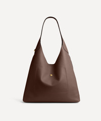 DETAILS Shoulder bag Grain leather Colourway: Brown Hobo style Magnetic snap closure Internal snap pocket Fits a 15” laptop Wide shoulder strap COMPOSITION & SIZE 100% Cow Leather L: 43.2cm, H: 38.9cm, W: 11.9cm Handle Drop: 31.7cm