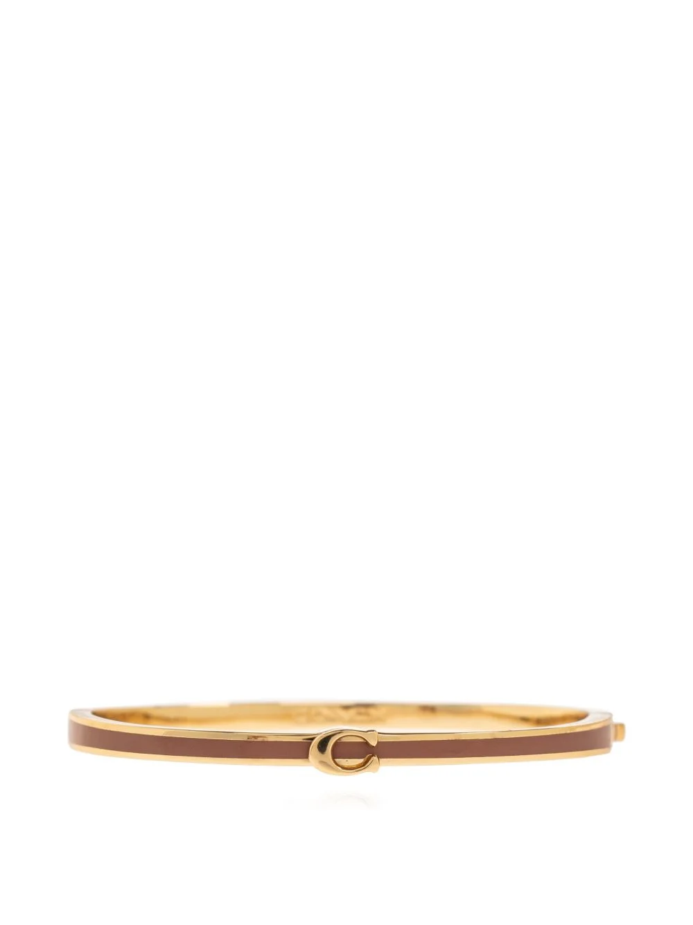 c-buckle metal bracelet Highlights - Gold and brown - Stripe detail - C-buckle - Polished finish - Hinged fastening Imported SIZE & FIT Measurement CIRCUMFERENCE 1.96 in(5 cm)