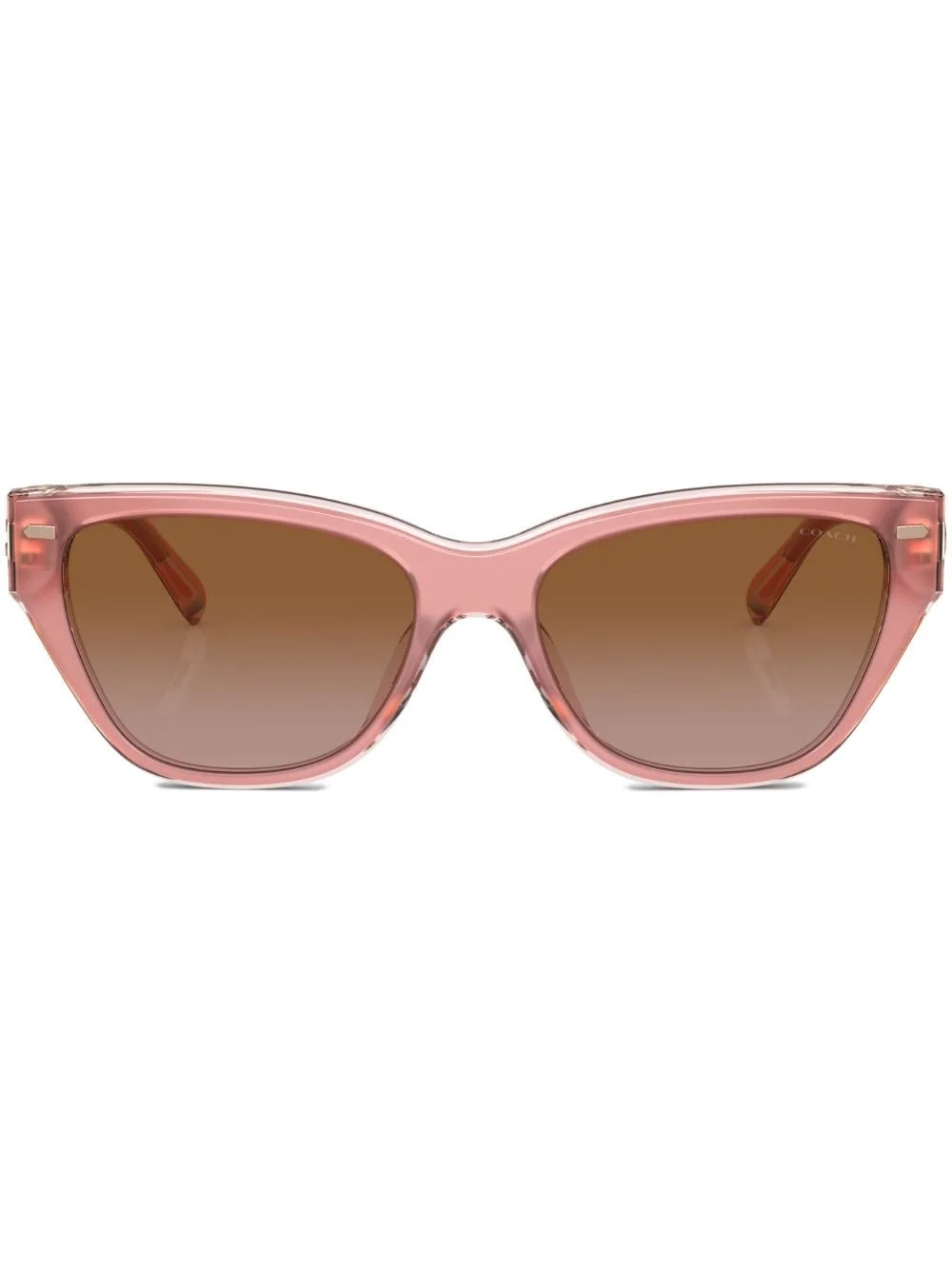 cat eye sunglasses An oversized take on an iconic shape, these Coach cat eye sunglasses offer full UV protection. They're finished with the brand's 'C' hardware at the temple for a heritage touch. Highlights - Pink - Acetate - Gradient lenses - Logo detail at temples - Chunky arms - Curved tips - These glasses come with a protective case. Made in United States Composition Acetate 100% SIZE & FIT Measurement Arm Length 5.7 in(14.5 cm) Bridge Width 0.62 in(1.6 cm) Lens Diameter 2.2 in(5.6 cm)