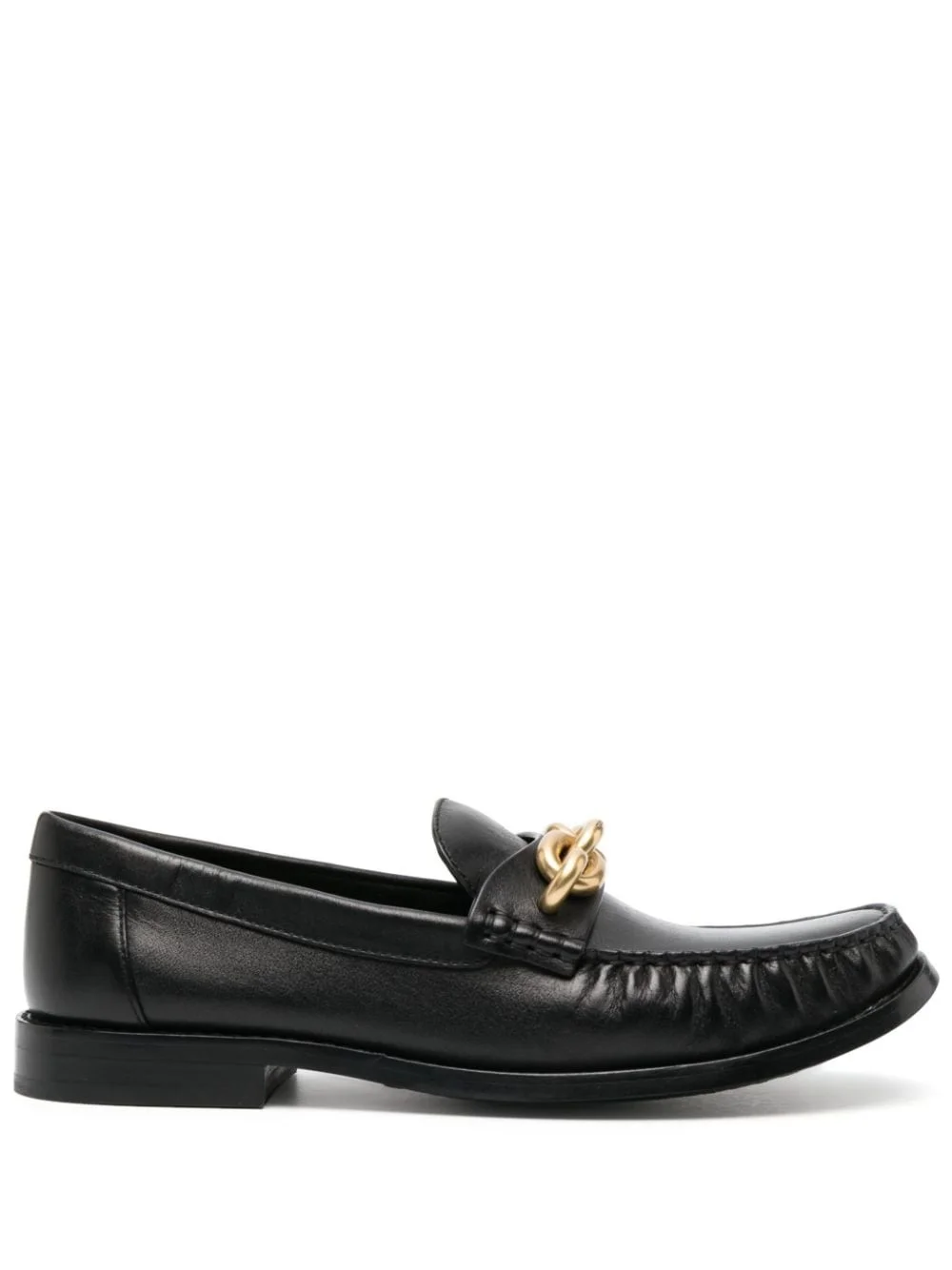chain-link detailing leather loafers Highlights - Black - Calf leather - Gold-tone hardware - Chain-link detailing - Almond toe - Slip-on style - Branded insole - Leather sole Imported Composition Outer: Calf Leather 100% Lining: Calf Leather 100% Sole: Calf Leather 100% SIZE & FIT Measurement HEEL 0.98 in(2.5 cm) Sole height 0.59 in(1.5 cm)