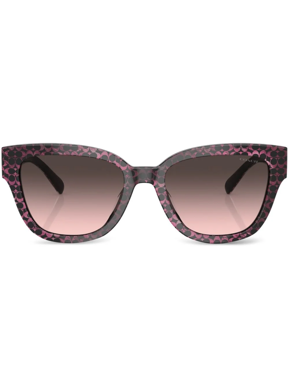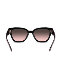 monogram-pattern sunglasses Highlights - Dark pink/black - Semi-matte finish - Monogram pattern - Gold-tone logo lettering - Gradient lenses - Square frame - Raised bridge - Straight arms - Curved tips - These glasses come with a protective case. Made in United States Composition Acetate 100% SIZE & FIT Measurement Arm Length 5.51 in(14 cm) Bridge Width 0.74 in(1.9 cm) Lens Diameter 2.12 in(5.4 cm)